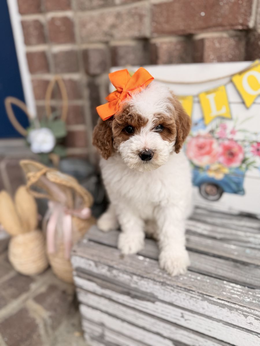 This sweet girl is looking for her forever family! We are placing her in a guardian home. She will come back to us to have puppies 2-3 times. She will be 12-15lbs full grown, non shedding coat, friendly sweet personality.