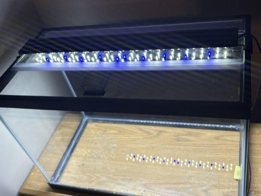 VenmoBrand new, never-used 20-gallon aquarium. Purchased last year but never set up. The back of the tank is painted black. Includes the tank, new light, and glass lid. Stand not included