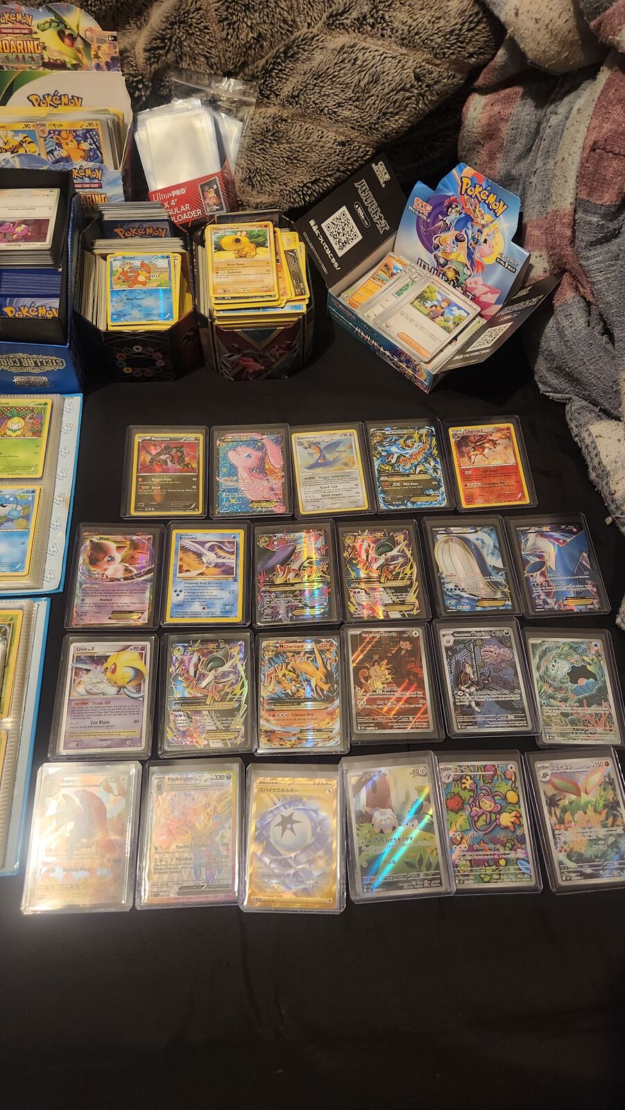 ZelleOver 1000 pokemon cards ranging from newer sets back to base set, most have never been played and are mint or near mint. This is a great value for someone who wants to take the time to sell singles. Firm on price.