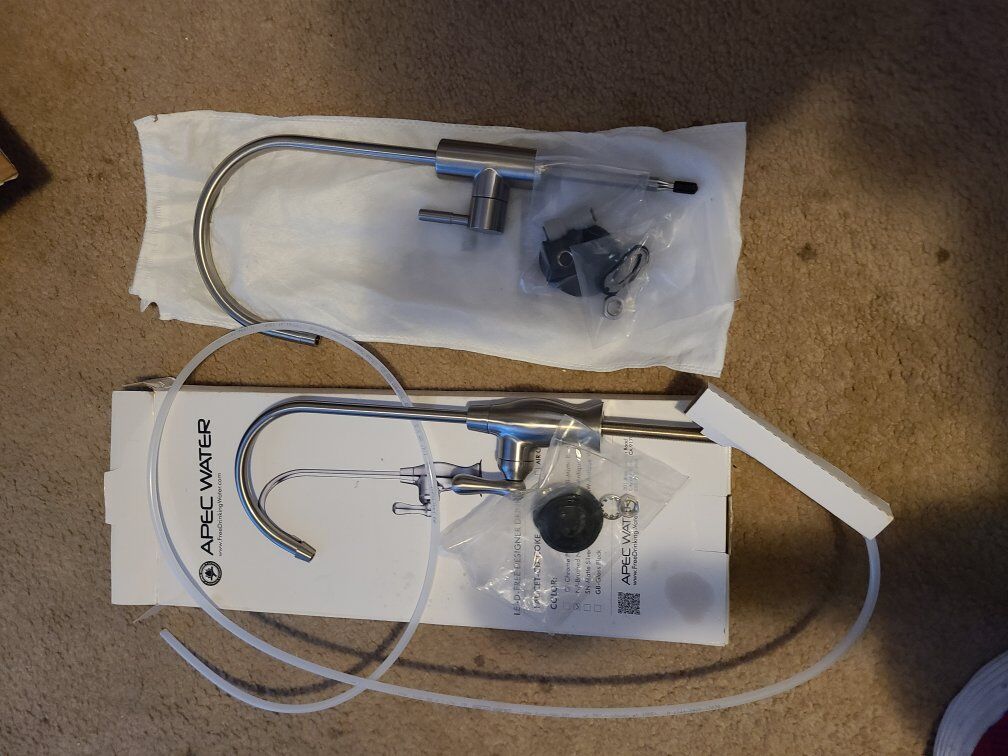 brand new just out of box. we ended up going with a different system. this one had great reviews new filters ect.. we are including an extra faucet with the system as well. Asking 150 which is less them half of what we originally paid for it.