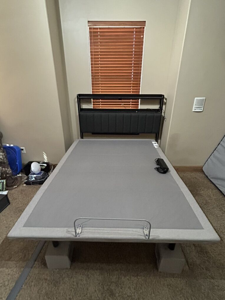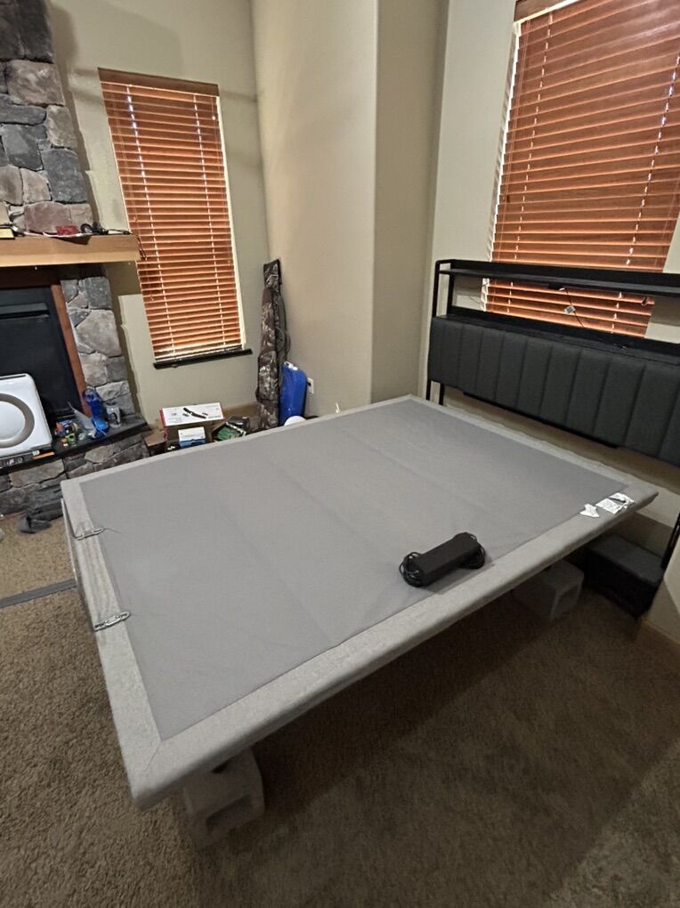VenmoThe brand is Tempur-pedic, good condition, motorized/adjustable and comes with remote. (The headboard in photos is separate and already sold)