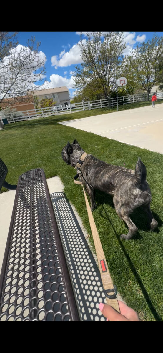 About Stella • Female Cane Corso • turned 4 years old December 2025 • Spayed • Healthy and active • Knows sit, stay, lay down • Potty trained and well behaved in the house