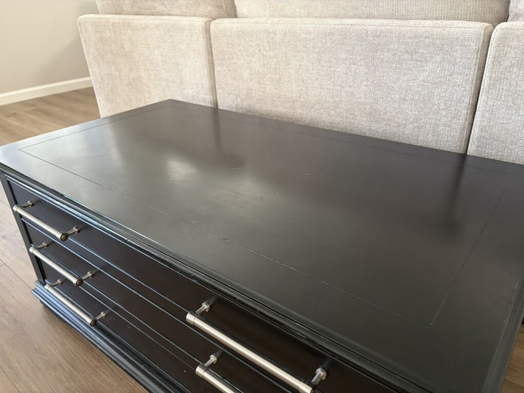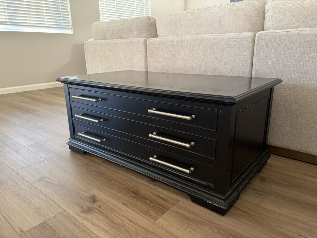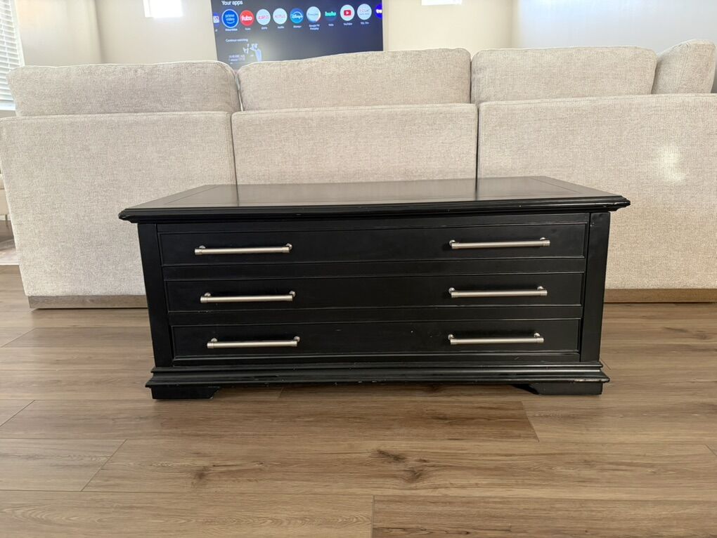 ZelleBlack Ethan Allen coffee table, perfect for most living rooms and can hold a lot of blankets or anything else needing to be stored!