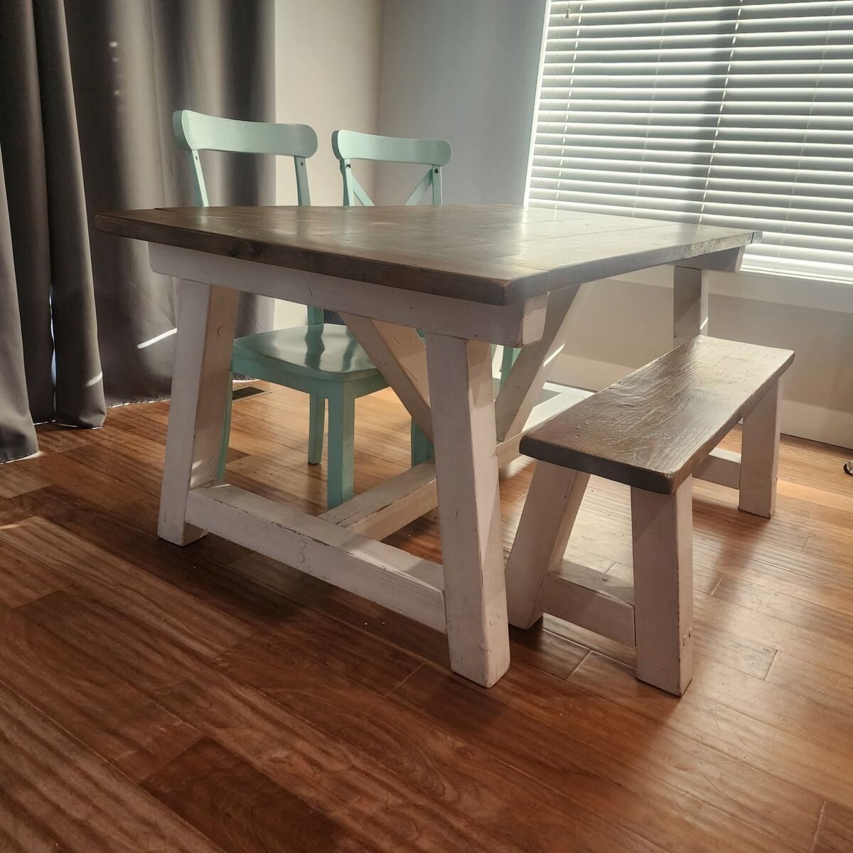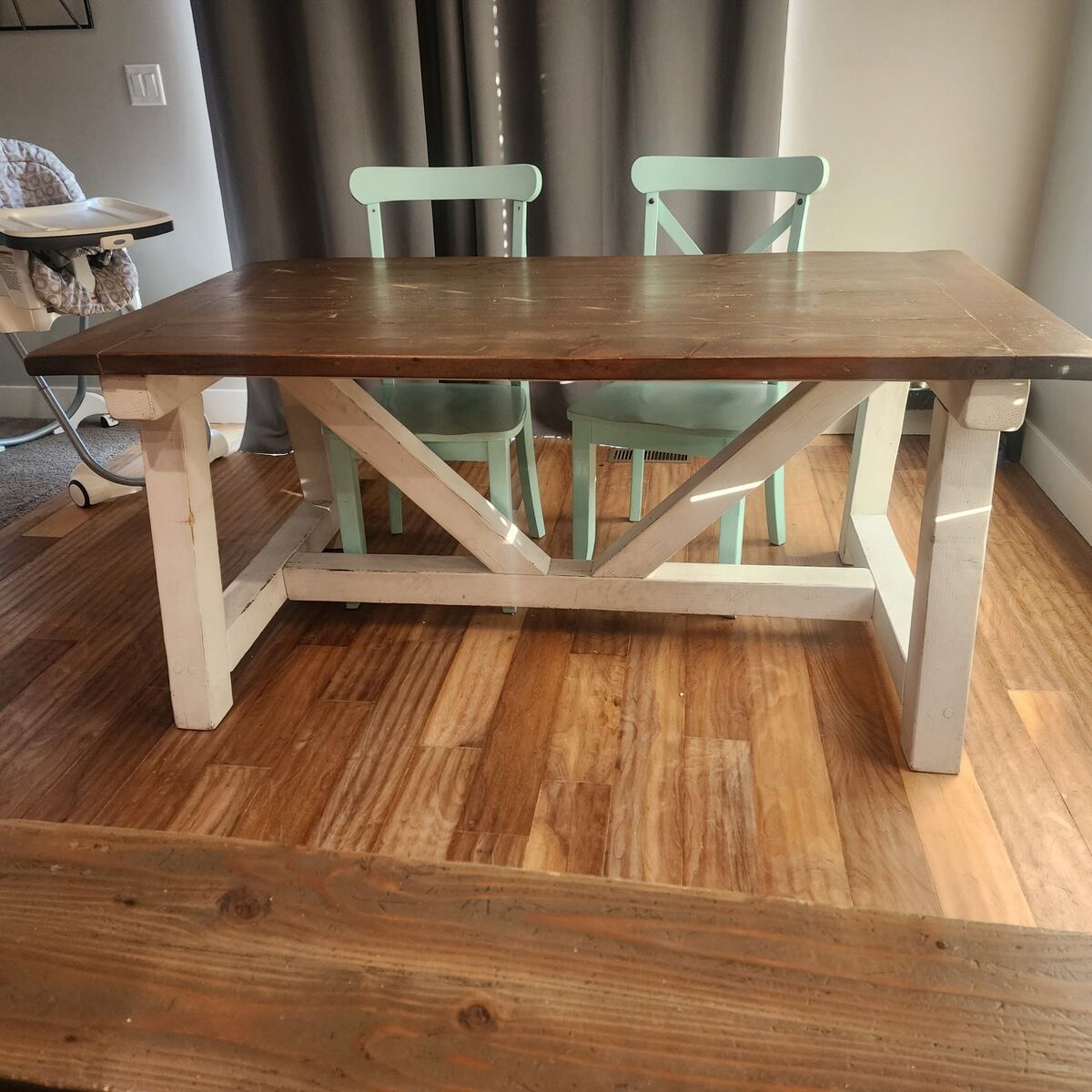 Heavy Duty Built Dinette Table With Bench And Two Chairs. Could Use A Fresh Refinish And Stain. $150 Please Contact Landon @ 801-836-4715