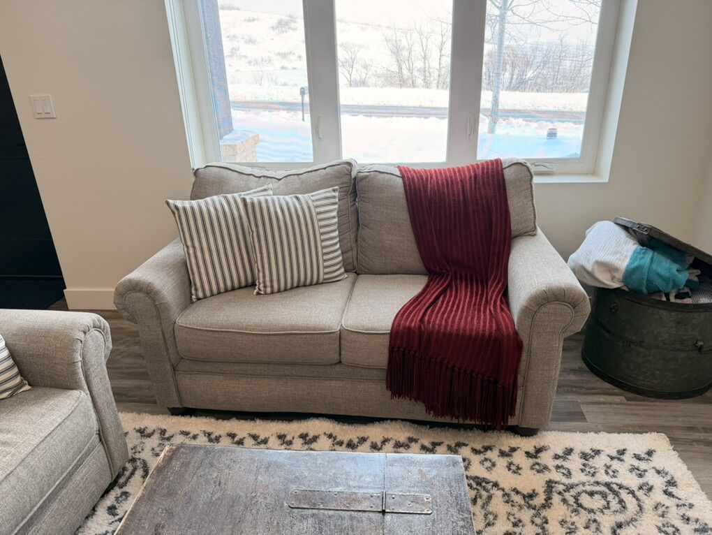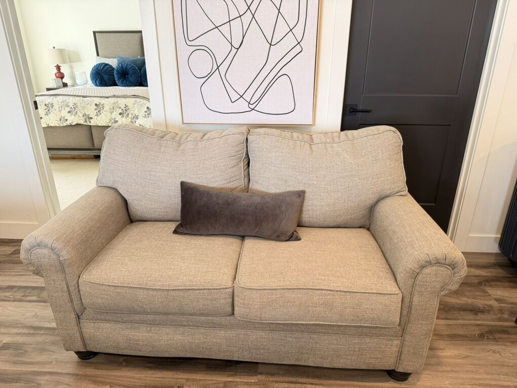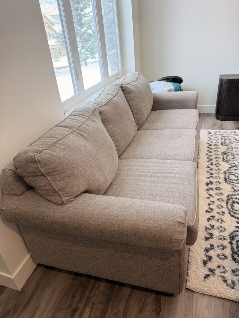 Barely used - guest room Neutral cream/grey/beige Durable fabric No stains, no tears, non smoking house.