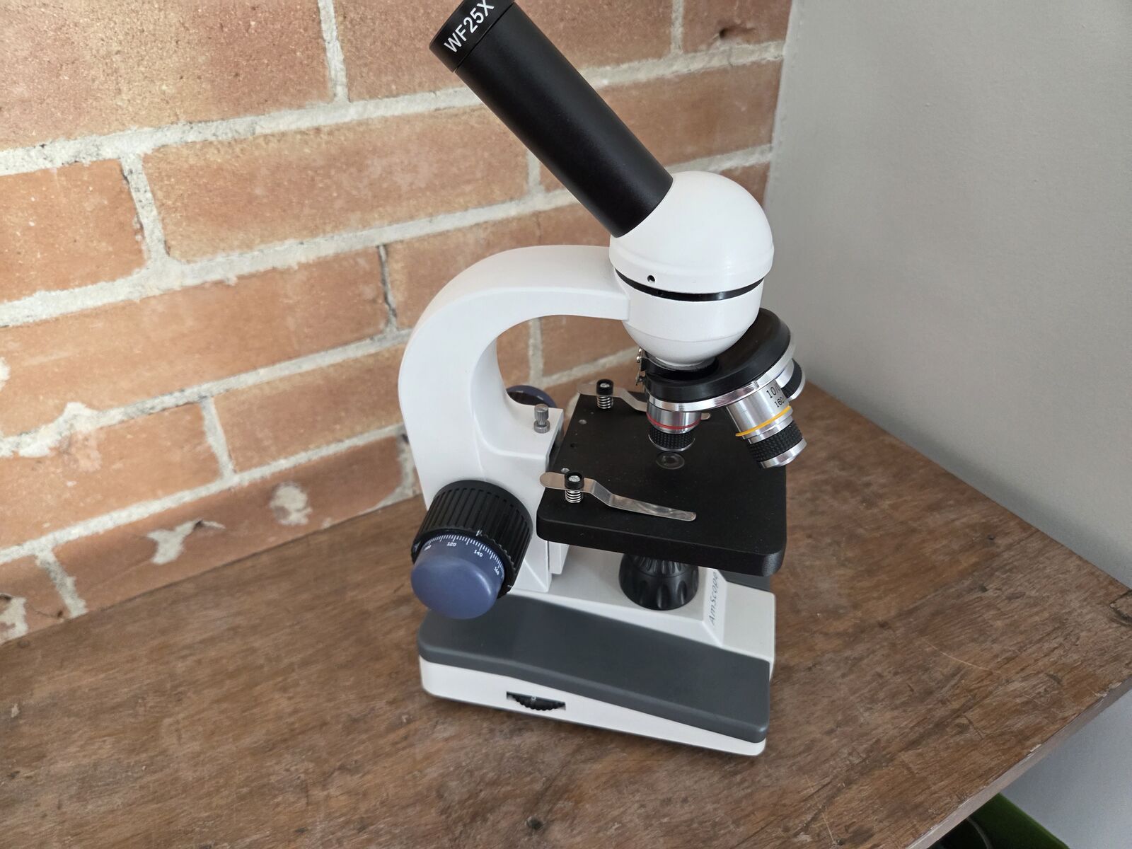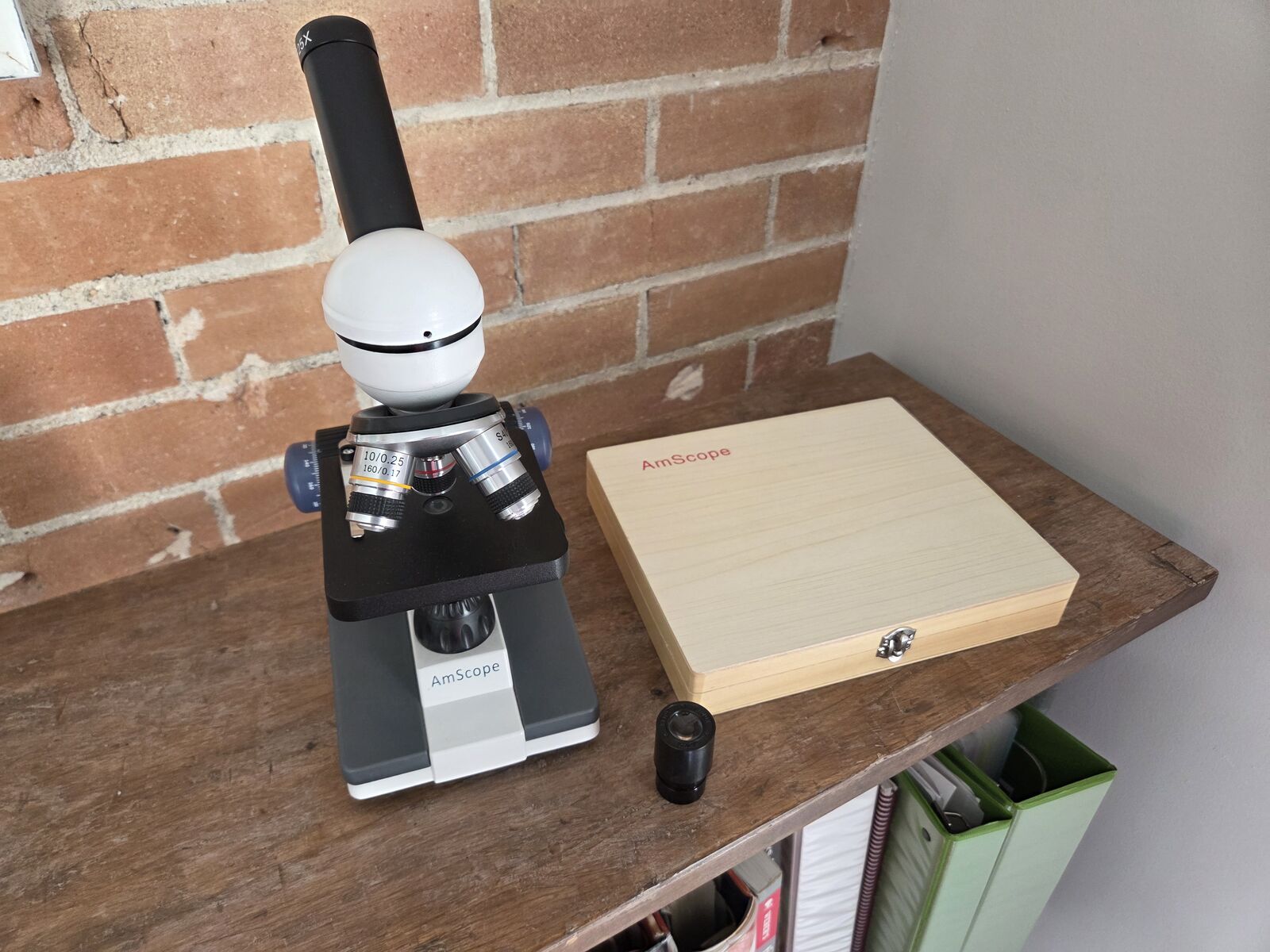 VenmoAmScope brand. Like new, barely used. Includes 100 specimen slides.