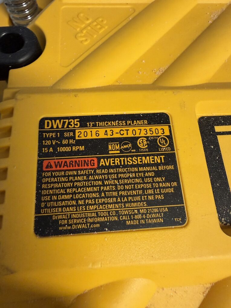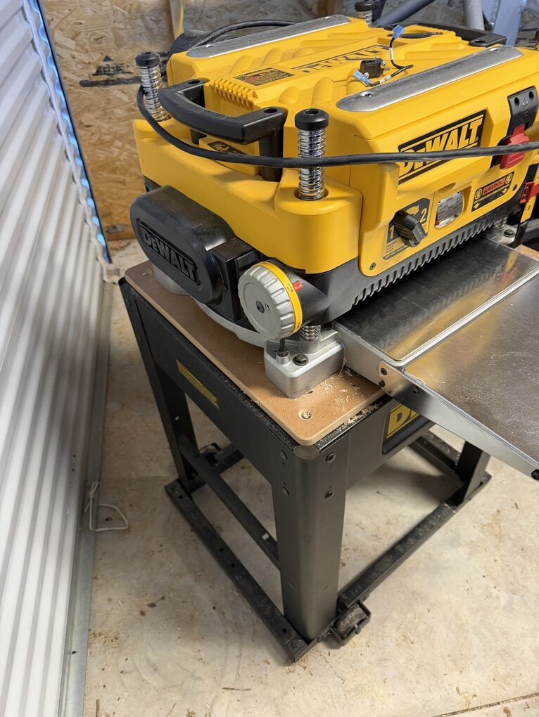 I purchased this from another seller for one project and am done now. Older DW735 on a stand. Blades are due to be replaced but it works great. I noticed some sniping, perhaps the tables need to be adjusted. I had to remove the switch that disabled the planer when the cover is off. Stand is great to keep the heavy planer mobile! Text with any questions.