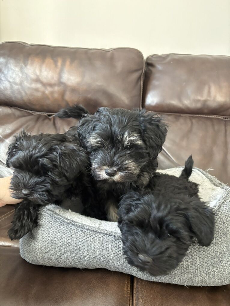 3puppies pure breed miniature,hypoallergenic schnauzer 10weeks old very sweet and loving ready to new home firs shots and dewormed $1000 price is flexible!