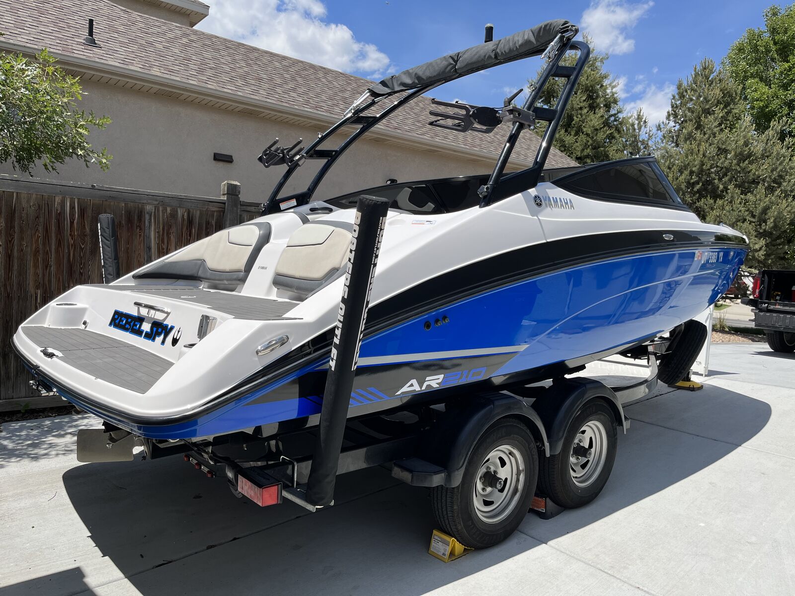 Selling our 2017 Yamaha AR210 — it’s been the perfect boat for our family but we’re upgrading as our kids grow and want something a little bigger. This is a 21-foot twin-engine jet boat that’s easy to drive, low maintenance, and a blast on the water.