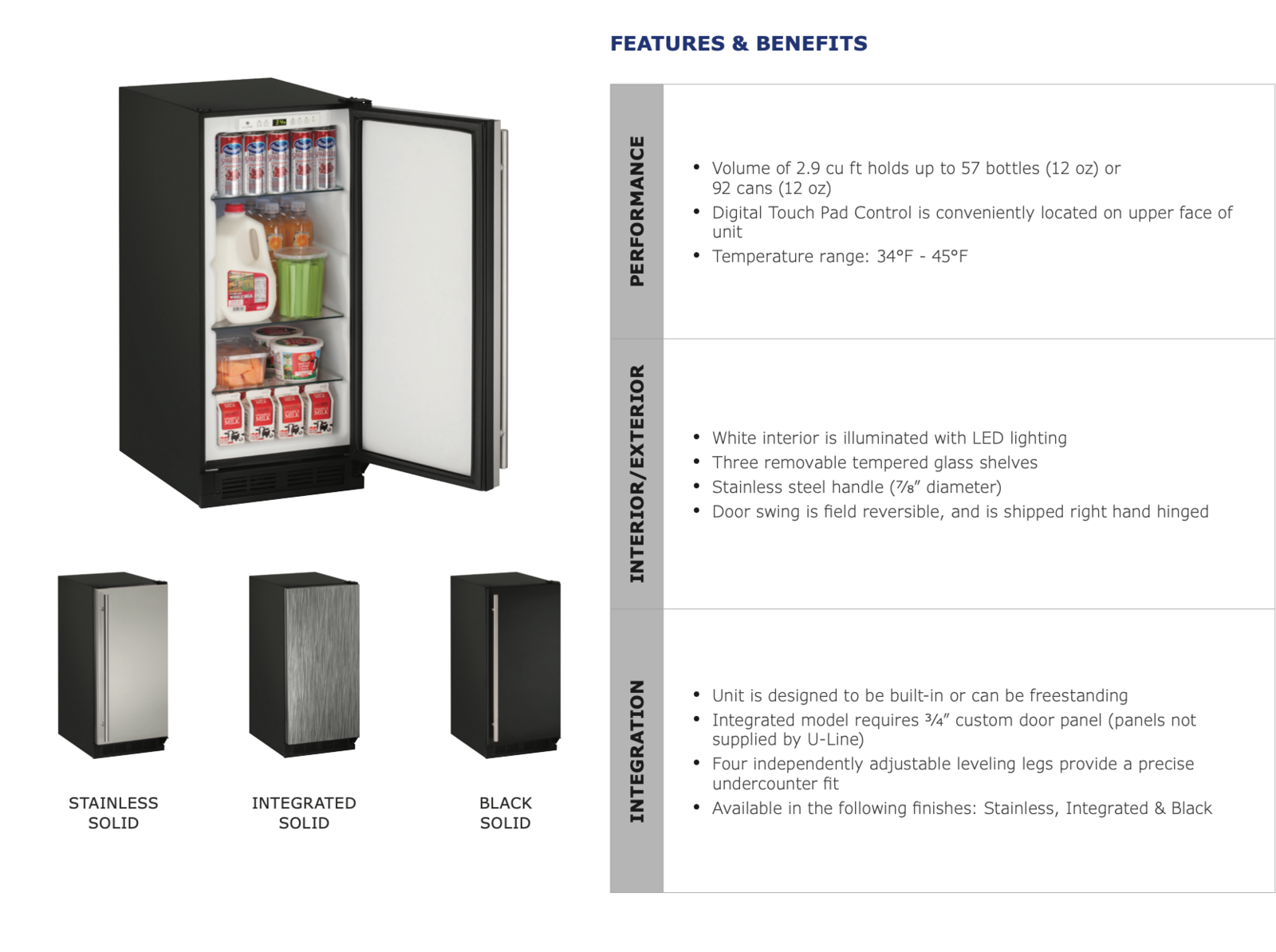 U-Line 1000 Series 2.9 cu. ft. Built-in/Freestanding Compact Refrigerator with 3 Removable Tempered Glass Shelves, 57 Bottle or 92 Can Capacity, Digital Touch Pad Control, Sabbath Mode, Star-K Certified and Energy Star Qualified: Stainless Steel