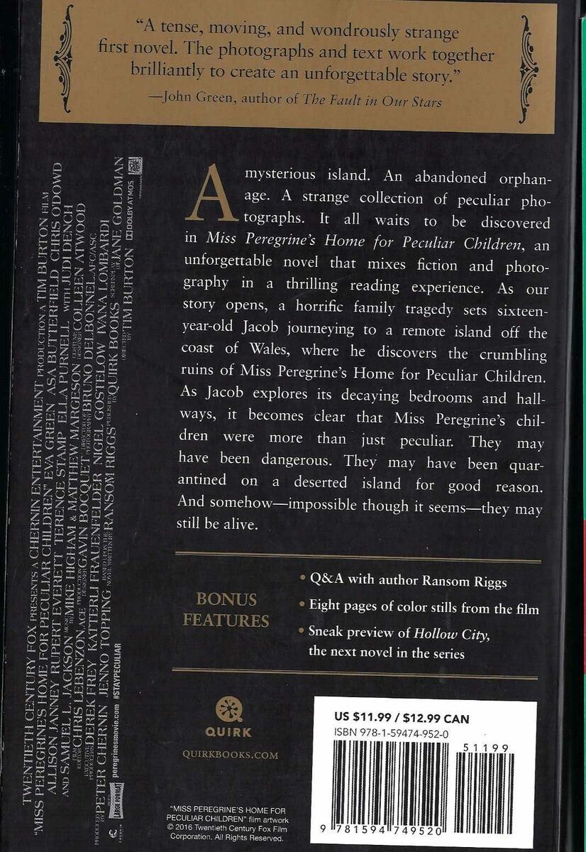 Venmo"Miss Peregrine's Home for Peculiar Children" is a novel published in 2011 by Ransom Riggs. This young adult fiction book is presented in paperback format and is written in English. The narrative follows a group of peculiar children at Miss Peregrine's home, where they are safe from the dangers of the world outside. Set in the United States, the story is filled with mystery and adventure, making it a captivating read for young readers.