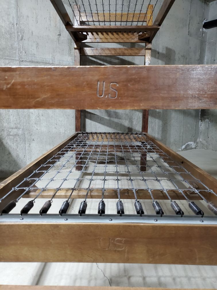 This US Army Military Bunk Bed Frame is authentic and an original piece of militaria from 1942. It actually is in very good condition and my boys slept on them for a couple of years. They could be useful in a cabin or to put in a museum. Asking $150 OBO. Cash only.