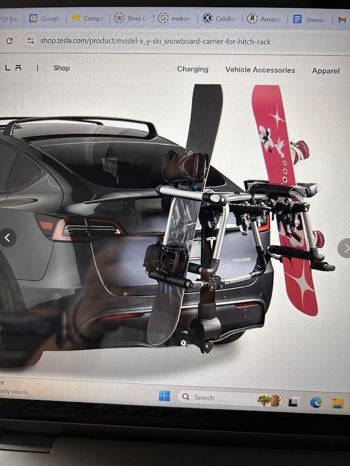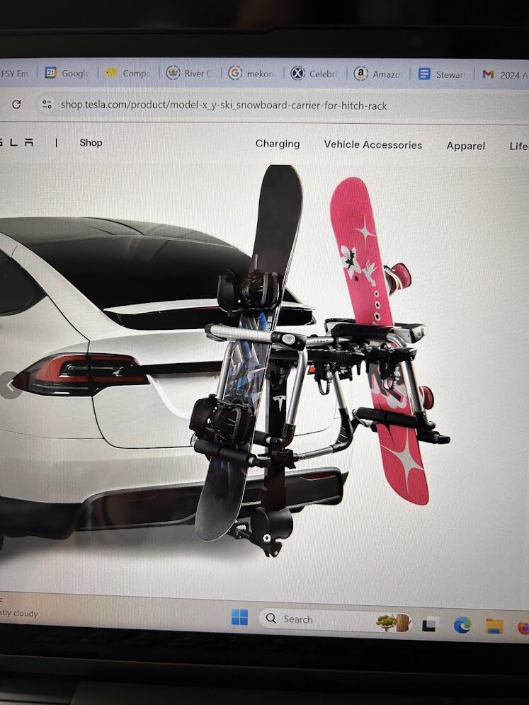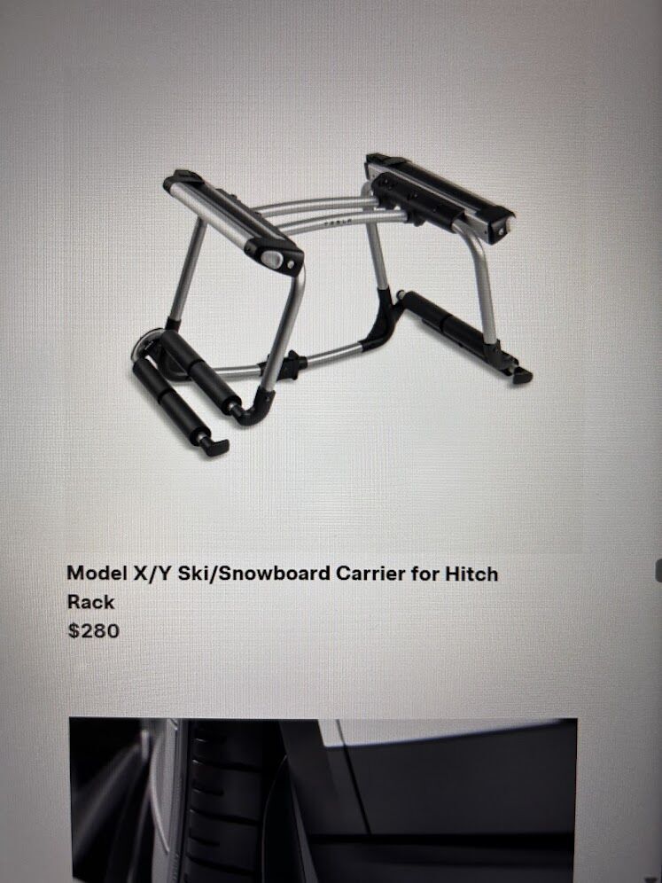 VenmoPractically brand new Ski or Snowboard Carrier for Tesla X or Y. This is the perfect season and time to go skiing or snowboarding. It holds up to 6 pairs of skis or 4 snowboards. Hitch rack is sold separately from Tesla.