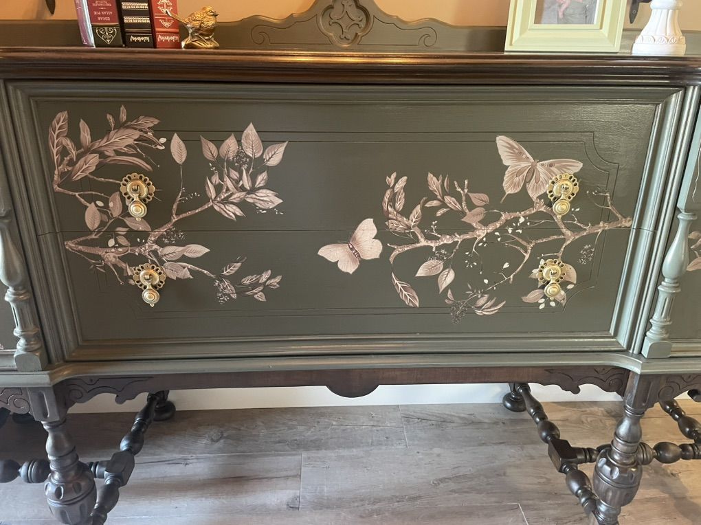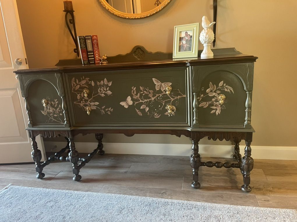 ZelleBeautiful Antique Buffet/Sideboard. One of a kind design and great quality. 72 long 22 deep 43 tall at back.