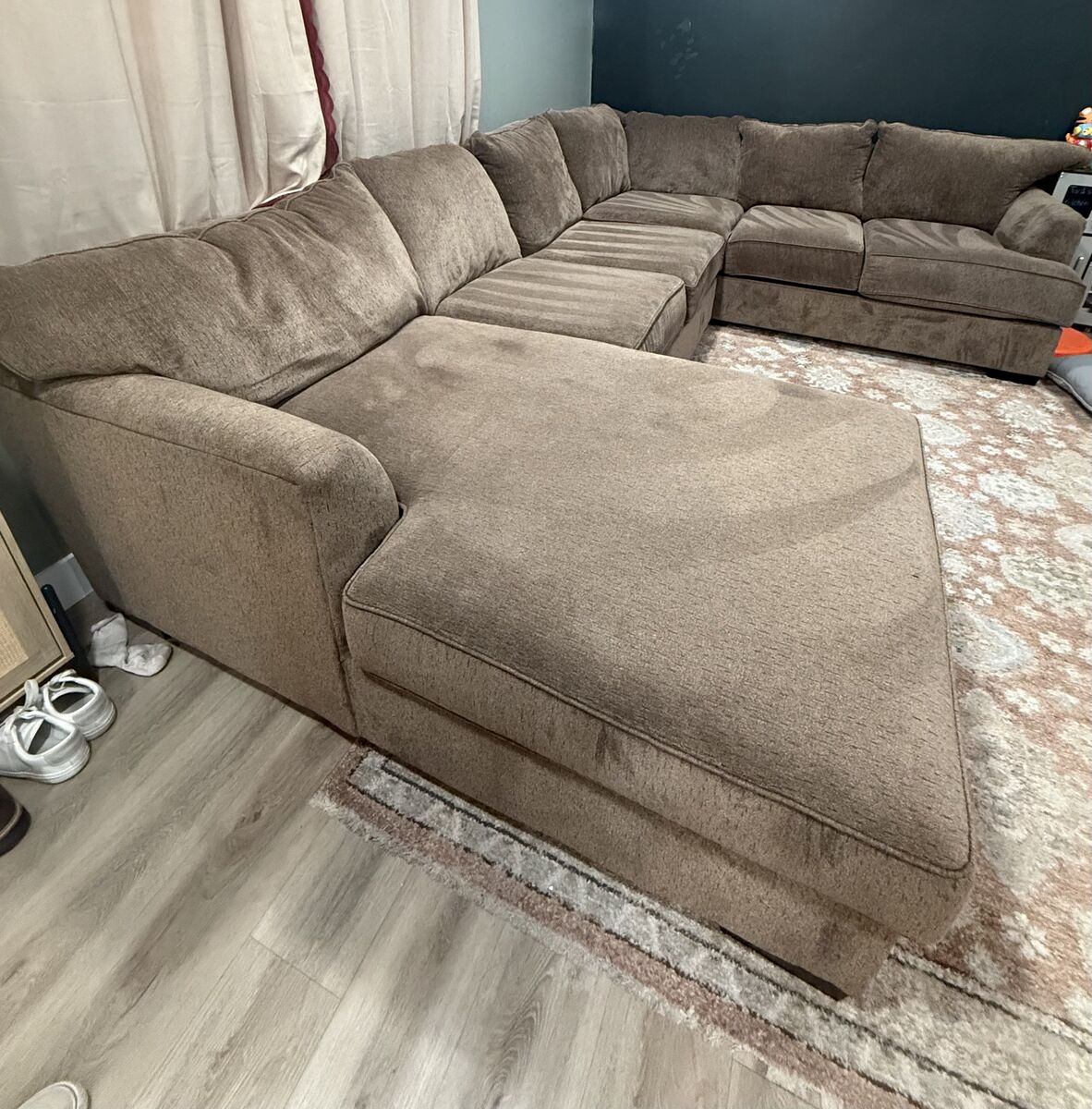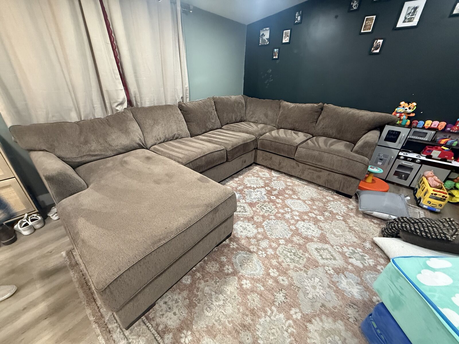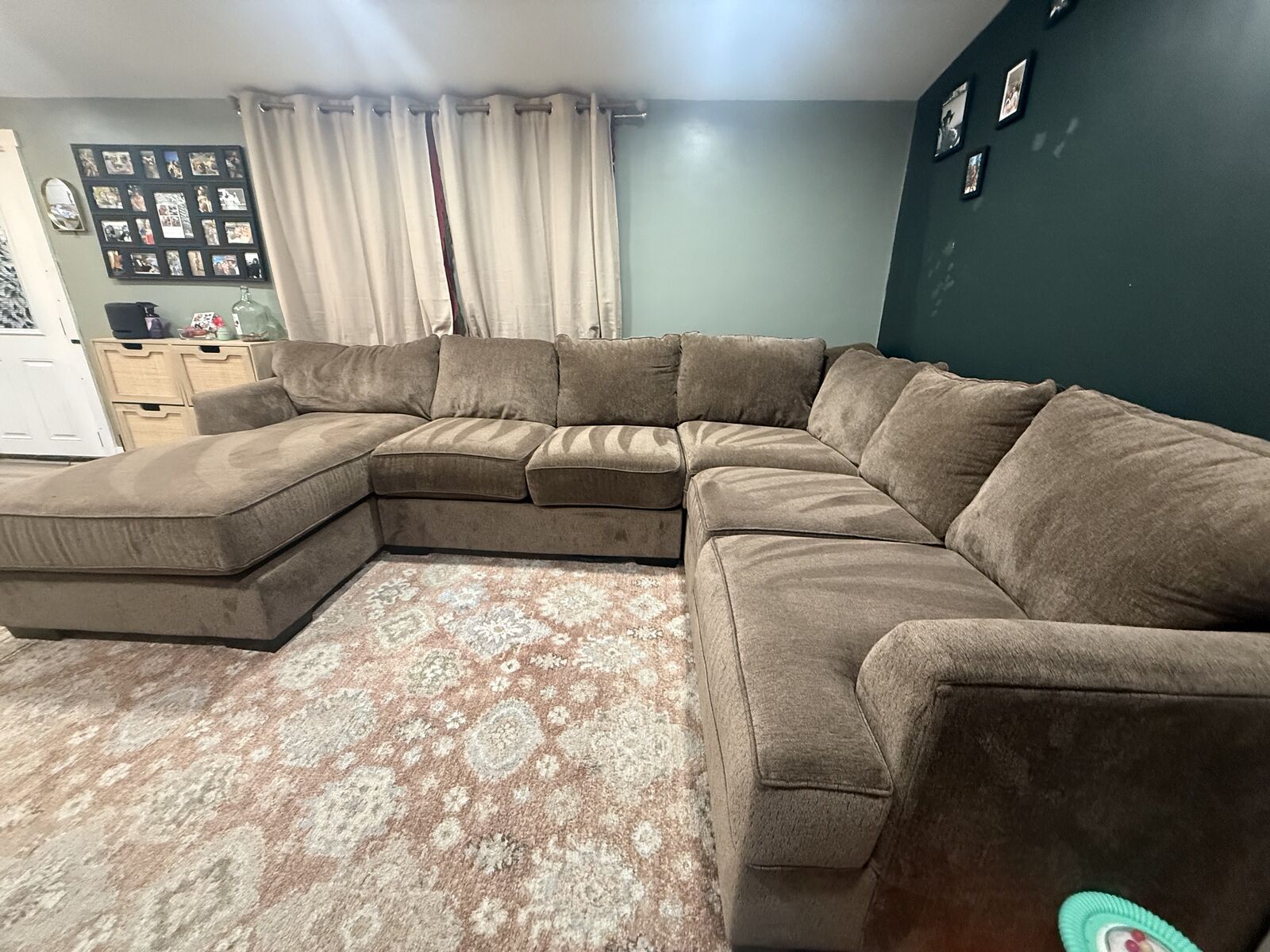 ApplePaySadly we are moving! This couch is just too big for our new space! Don’t not want to let her go but we must! She is in great condition we’ve only had her for a year! They have discontinued this color so she is officially rare! Comes with 5 decorative pillows ! Can help load couch/ delivery possible