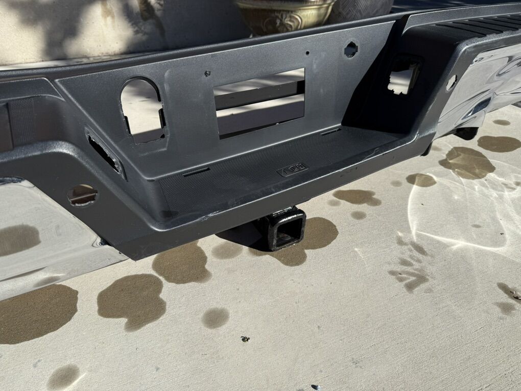 This came off my 2022 f150. Driver side chrome and support g structure is in good shape. Hit on passenger side. Max tow hitch is bent.