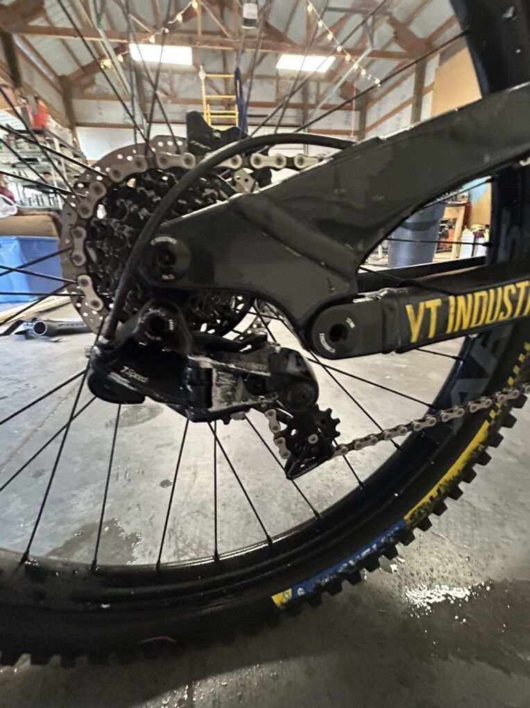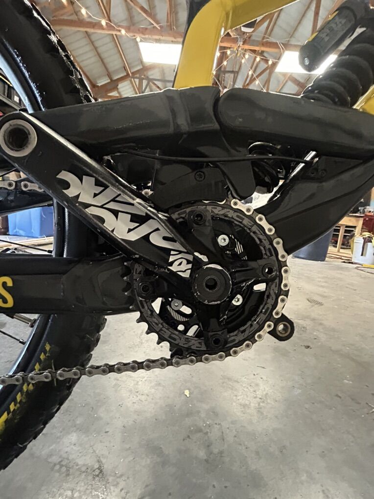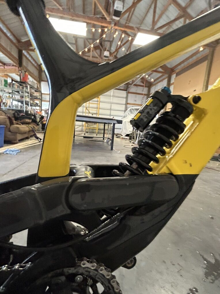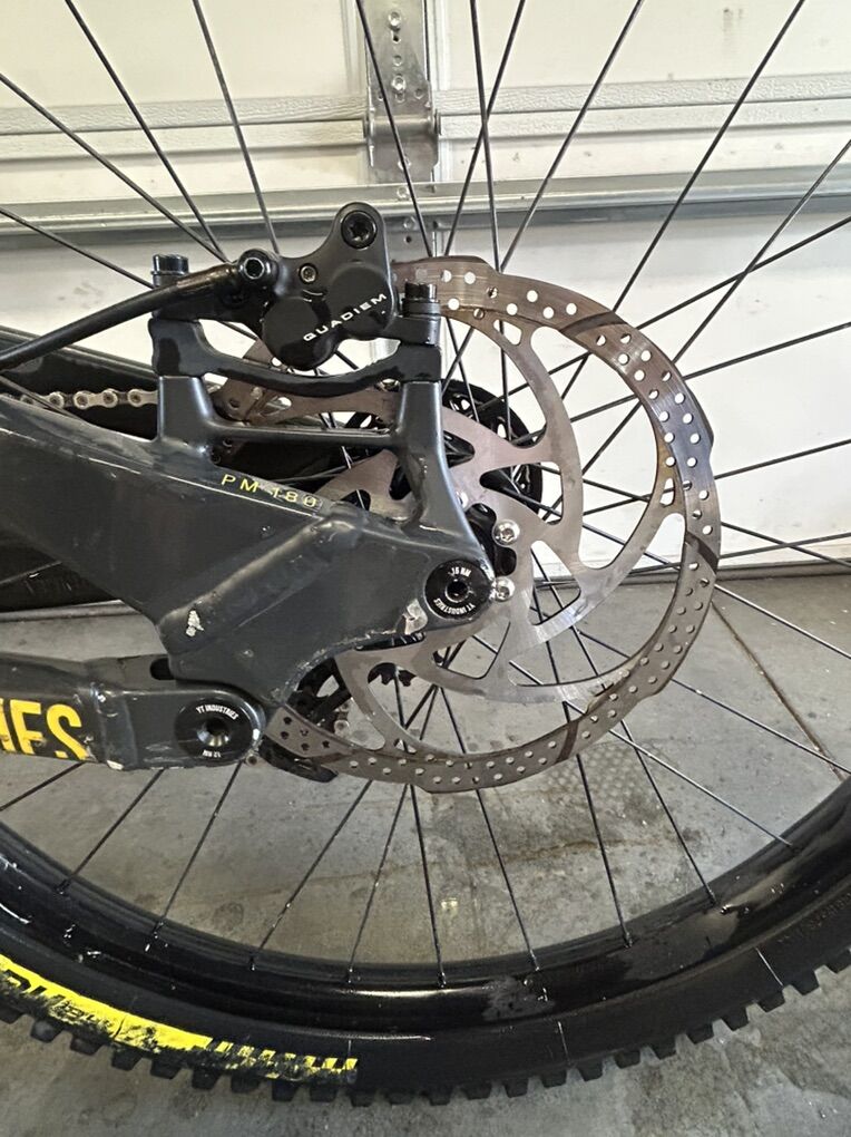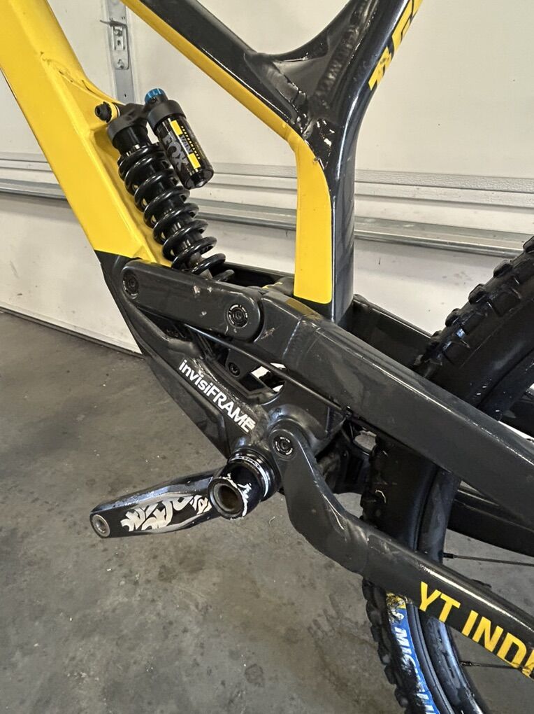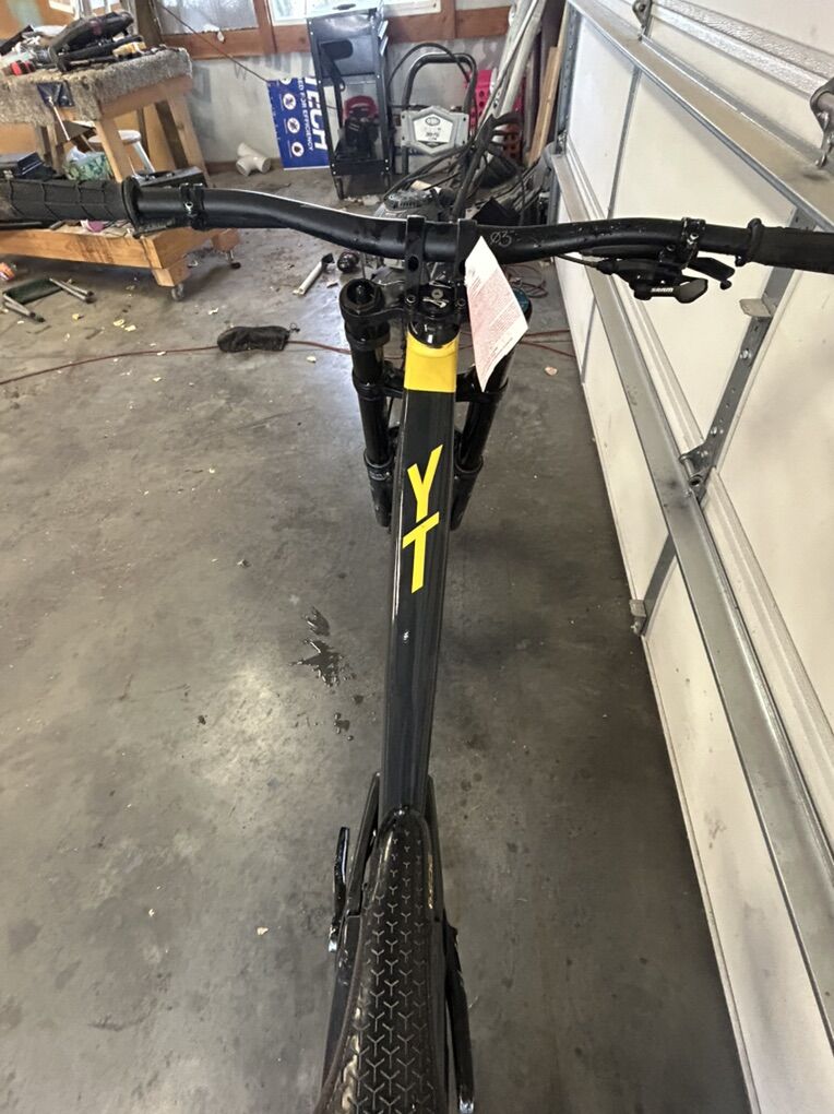 Size XL but runs small I’m 6’0” flat and it fits me perfectly. I bought it used and have only ridden it a handful of times at park. The 27.5 wheels allow for a playful time while 200 mm of travel front and rear lets it eat up anything. It does have scratches due to a washout and some things the previous owner has done but it’s all cosmetic and quite frankly it looks really good but with the scratches you don’t have to worry about it like you would a new bike. It’s the ultimate bike to ride hard and have a blast on. Does have ride wrap installed. Fox 36 performance fork Fox Coil rear Gx drivetrain TRP brakes