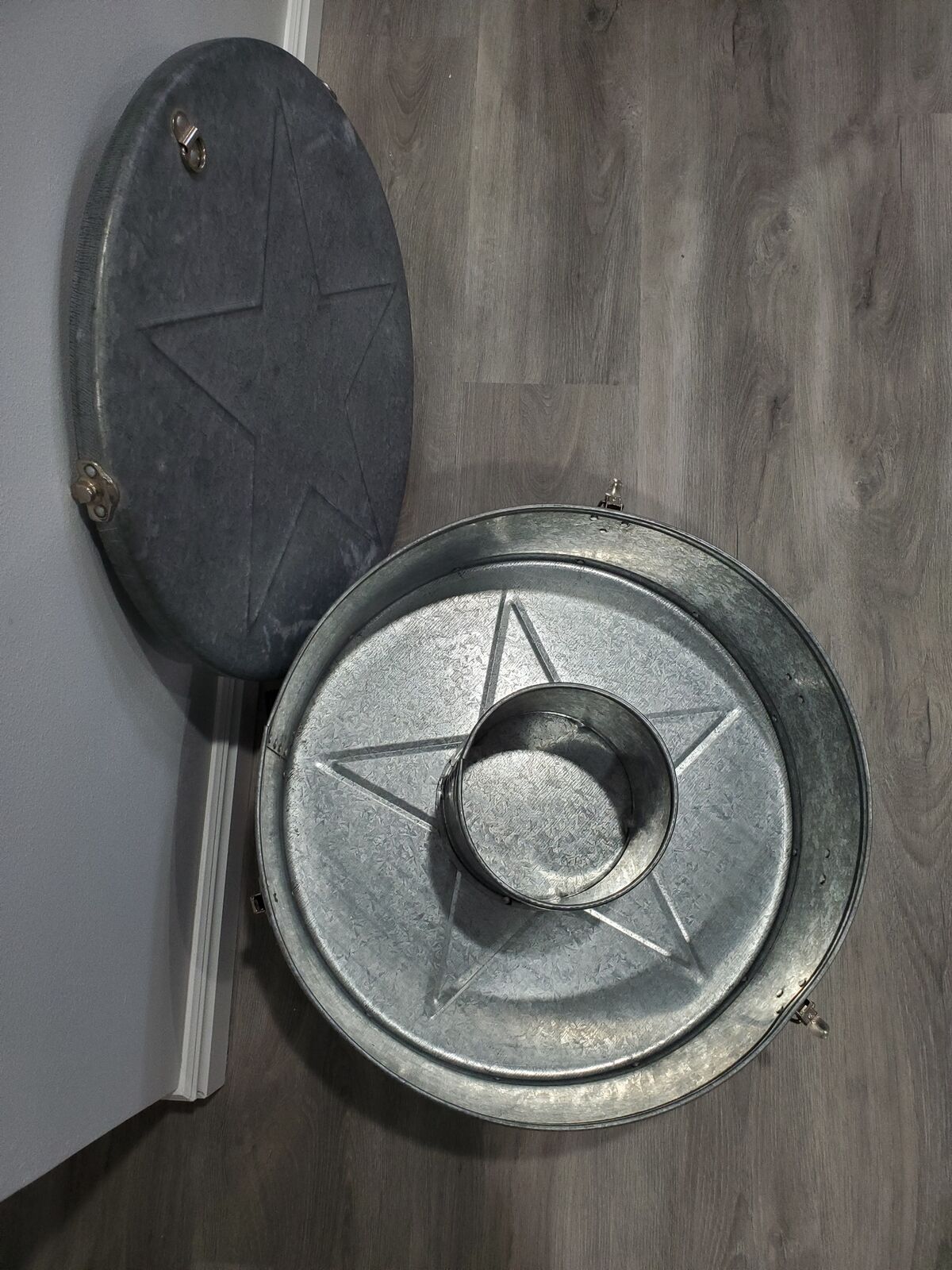 The can is in great shape with no rust or dents. The lid is a little difficult to get on and off and one of the hooks is very tight but still works.
