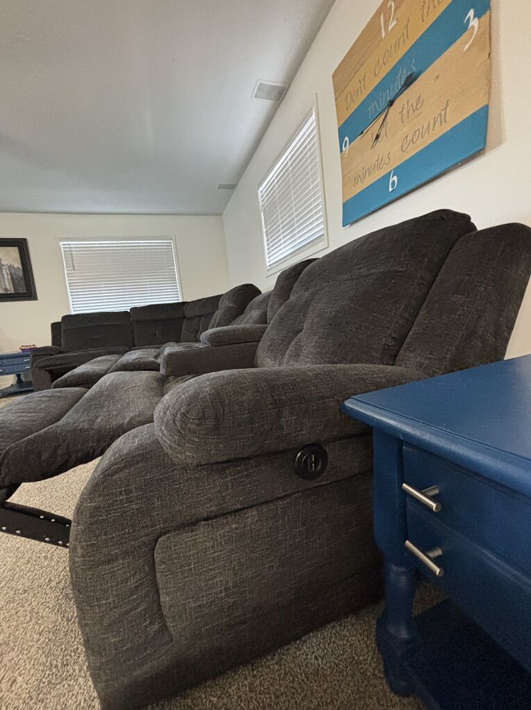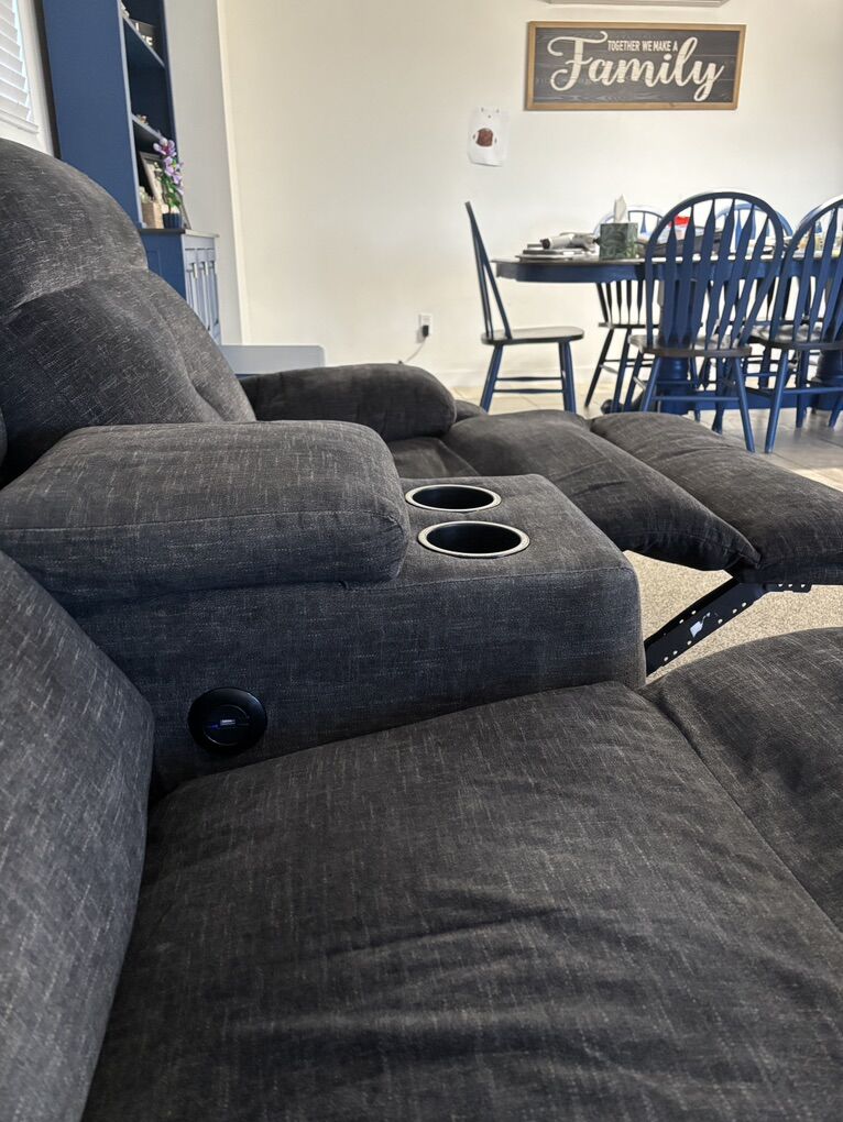 VenmoThis is a nice, gray sectional with 3 electric recliners. It has a nice console with storage and cup holders. Each recliner has a usb port for charging. All the recliners function great and have no issues.