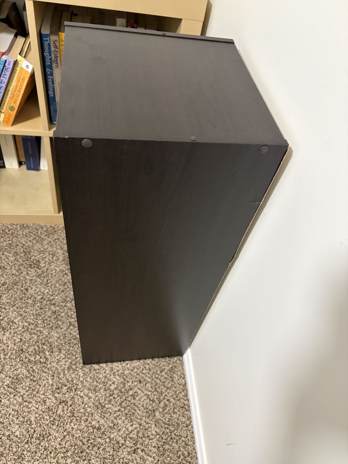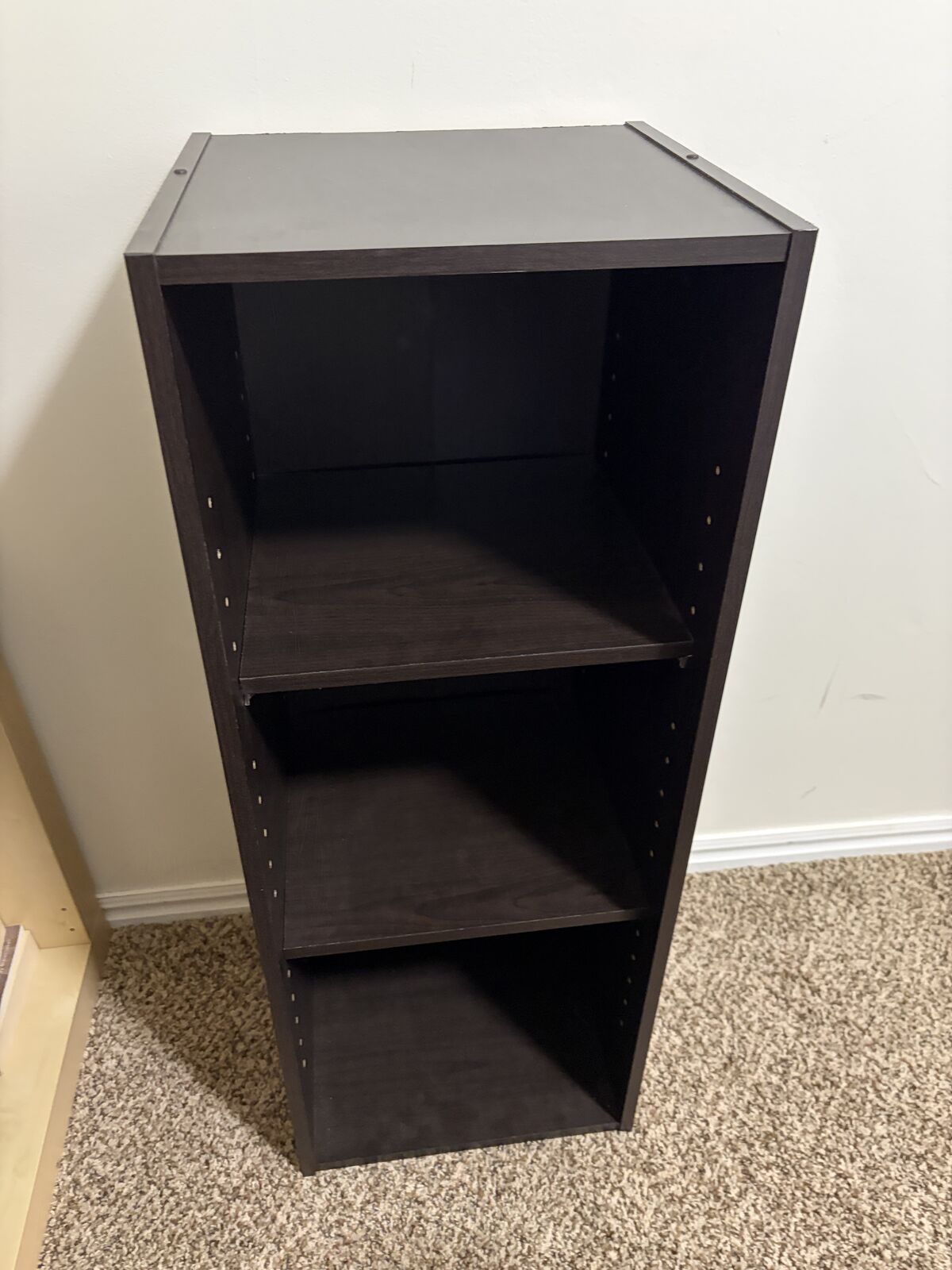 Small Brown Bookcase/Shelf with light wear and tear but in great condition. L 12x W 12x H 31.5 inches