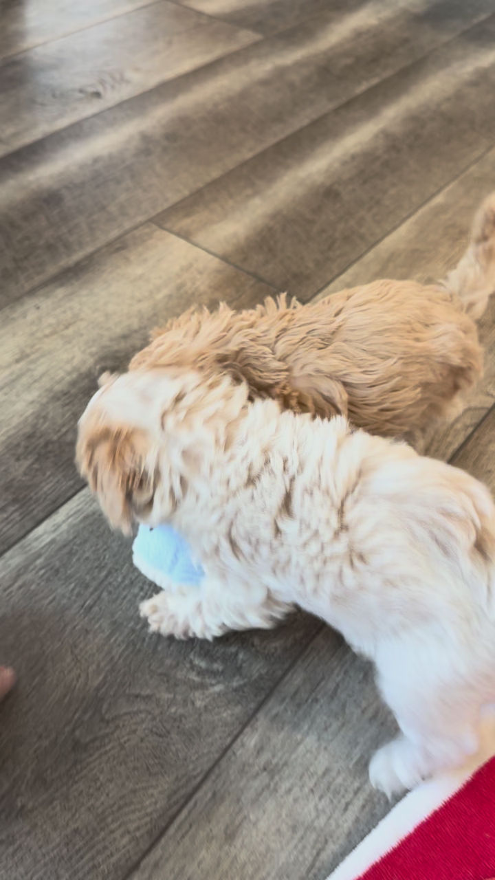 F1b Cavapoos are known for their soft, hypoallergenic, low-shedding coats, gentle temperaments, and eagerness to bond, making them a great option for those with allergies. They make wonderful companions for families, singles, and seniors. Mom is a F1 Cavapoo 50/50 and 8lbs. Dad is a white pure bred toy poodle 3.5-4 lbs.