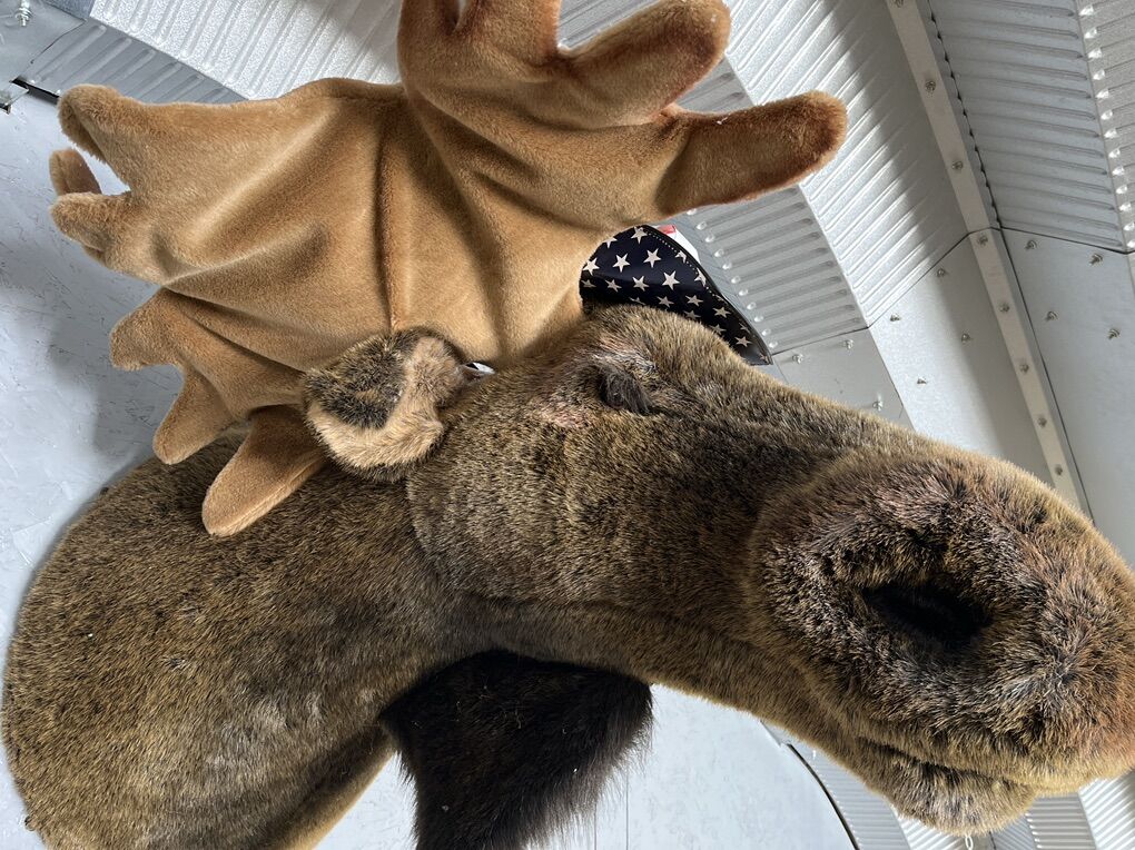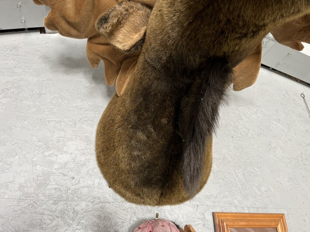Plush stuffed moose head 48” long 24” wide good condition.