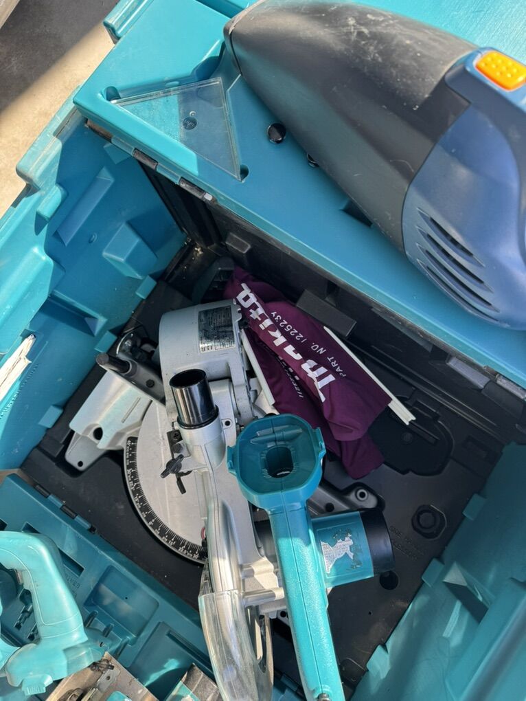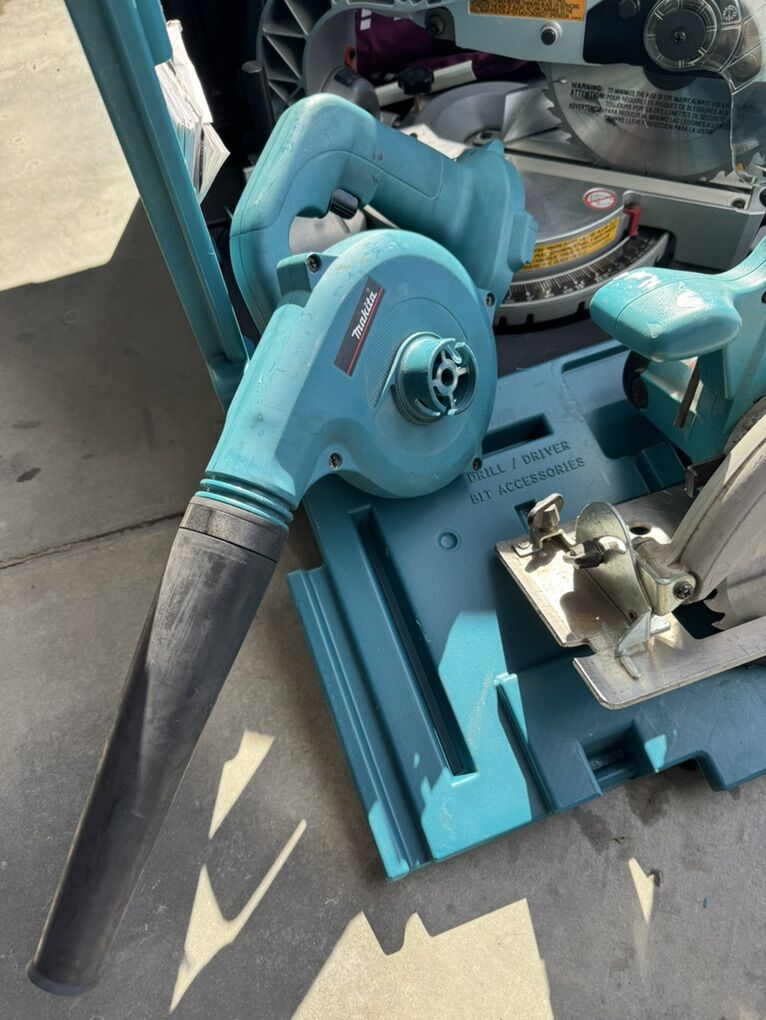 Great condition Makita power tools with case. Includes miter saw, circular saw, blower and Ryobi vacuum. A few accessories included