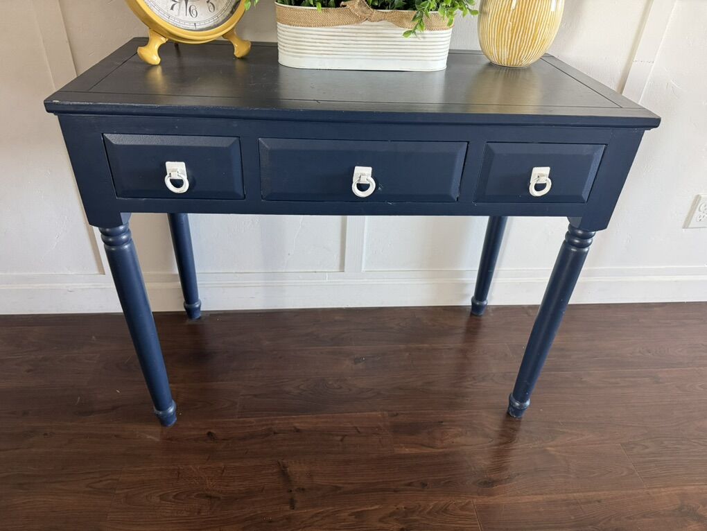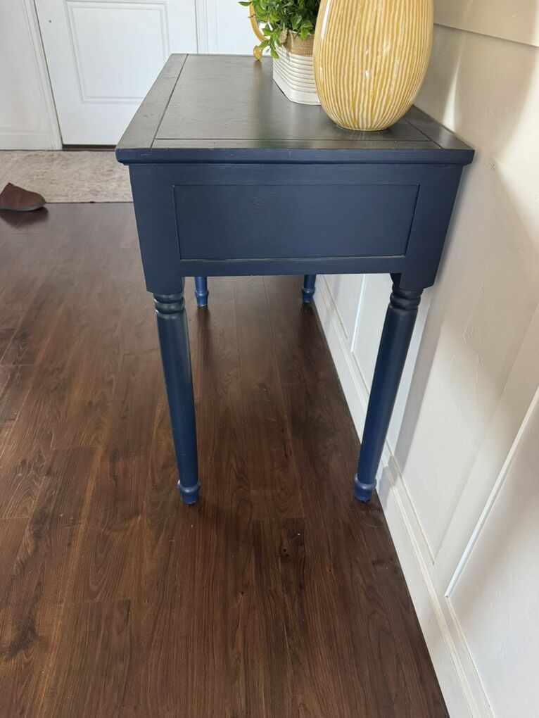 VenmoNavy blue side table. It measures about 39”L x 29 1/2 W x 31 1/4 H. Pickup in South Saratoga Springs.