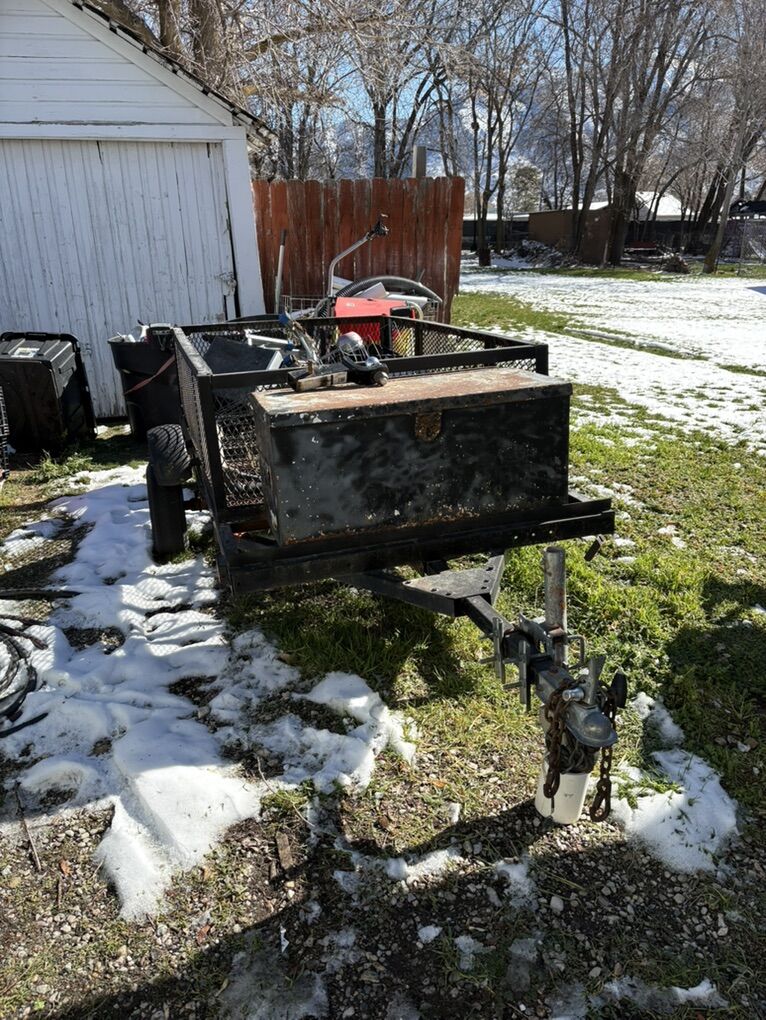 6.5ft x 4 ft haul area 3ft x 1.5 ft cargo box Crank doesn’t crank but trailer is easy to lift with no payload Tires are pretty worn, but will survive another couple months or so