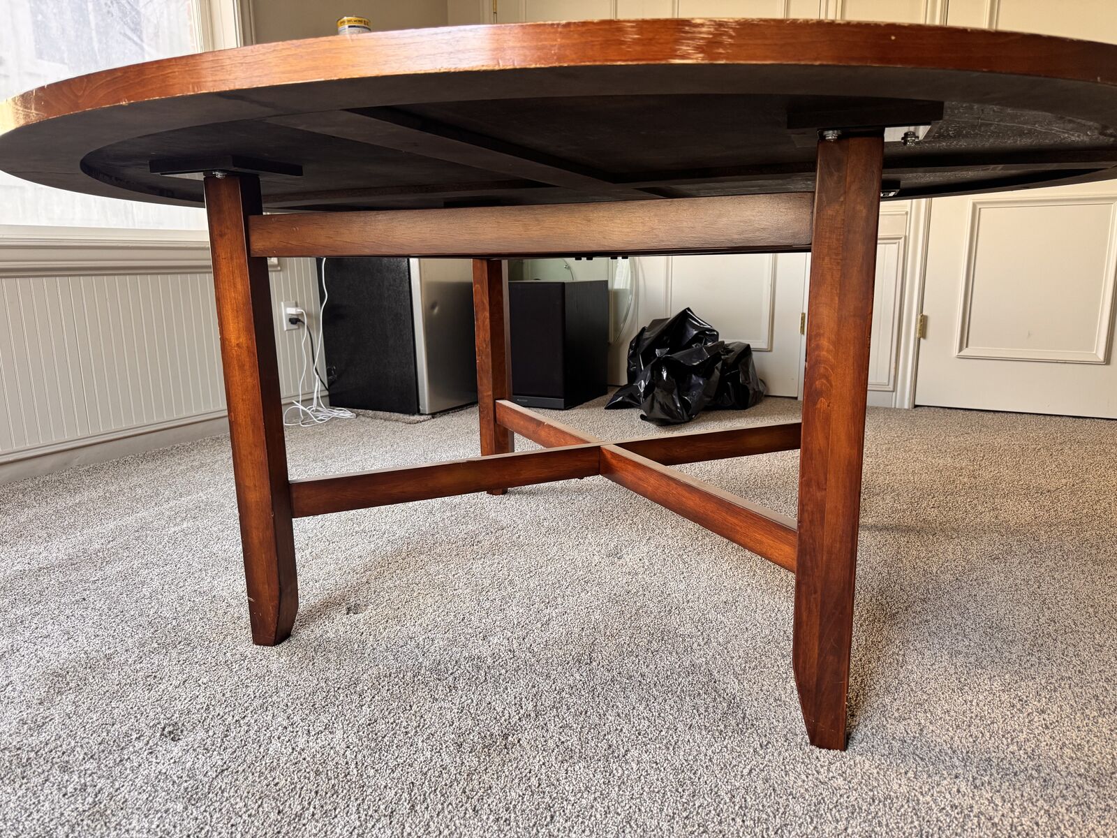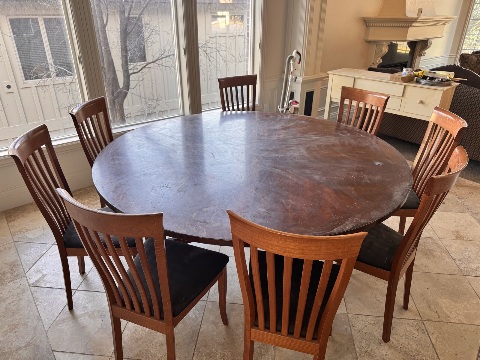 PayPalTwo 6 ft round craft tables with 10 chairs.. There are scratches and some stains. These are great for group meetings to do card games, crafts and more. If you wish to refinish the tops, these would be elegant di area tables.