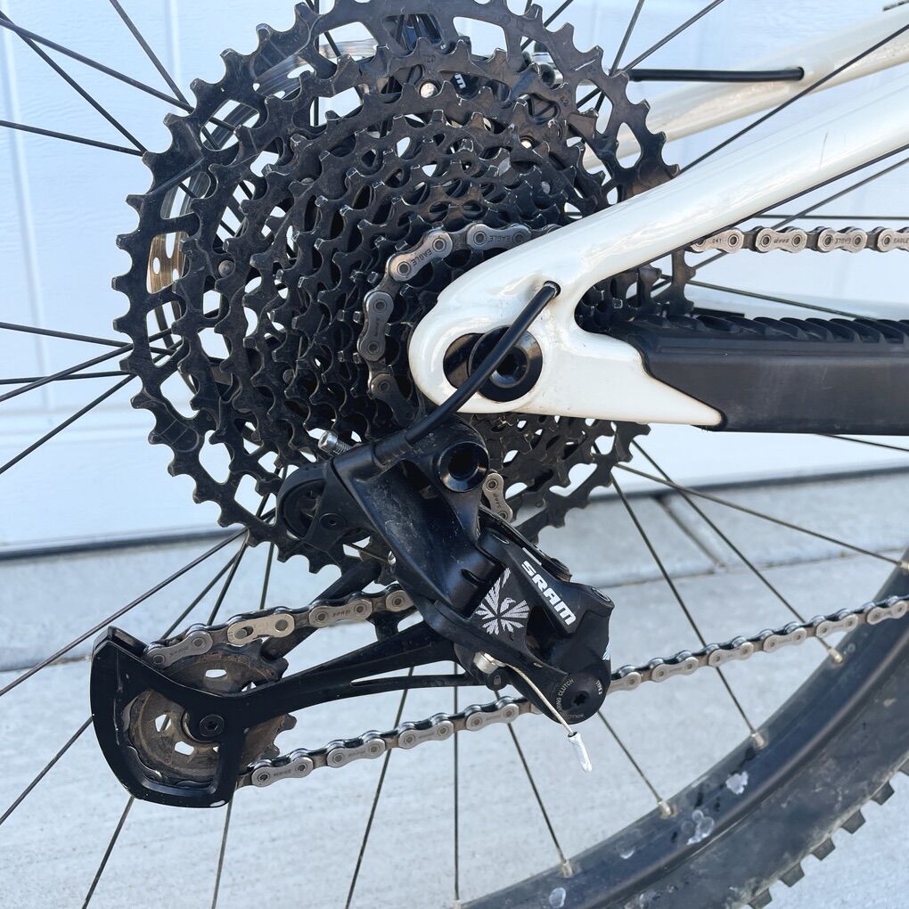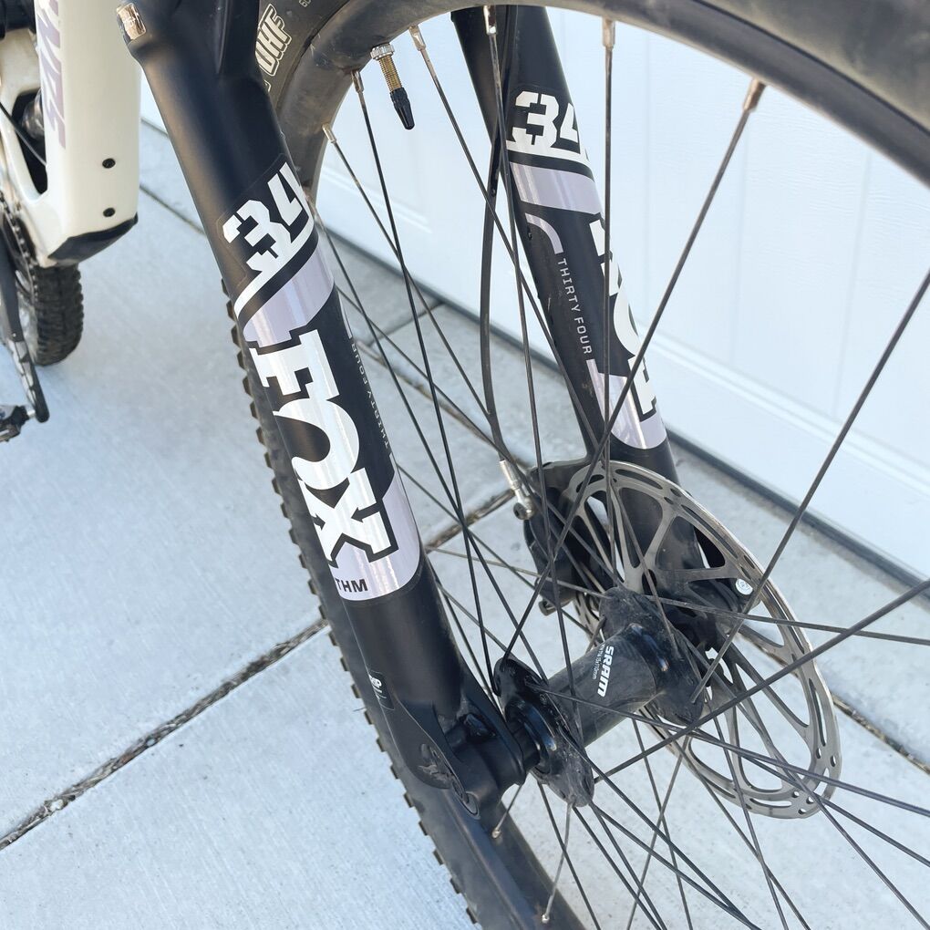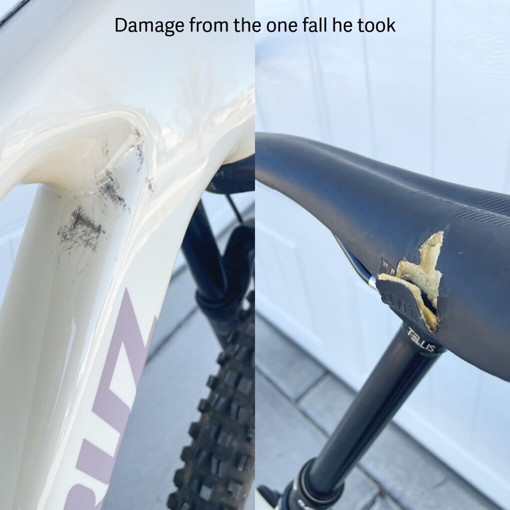 This mountain bike was a vain attempt to get my husband back into the sport. It has been kept clean and dry hanging in our garage, and I have added tire sealant each year.