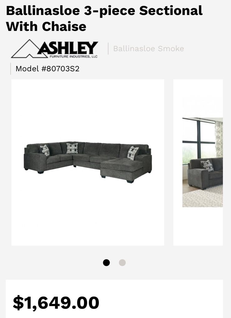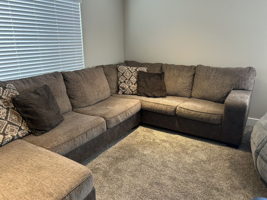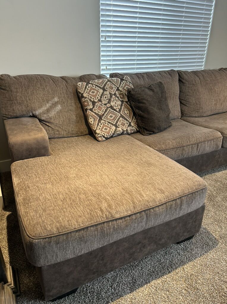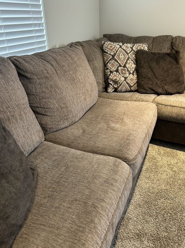 VenmoAshley Furniture Brown/Tan 3 Piece Sectional. Smoke Free/Pet Free Home Clean no stains, no rips or tears 140x93x39