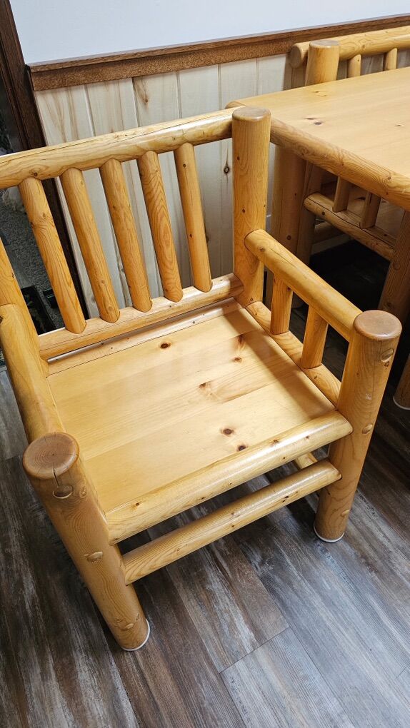 Log Table with 4 Chairs and a Bench 750.00 OBO 6’ Long x 38” wide
