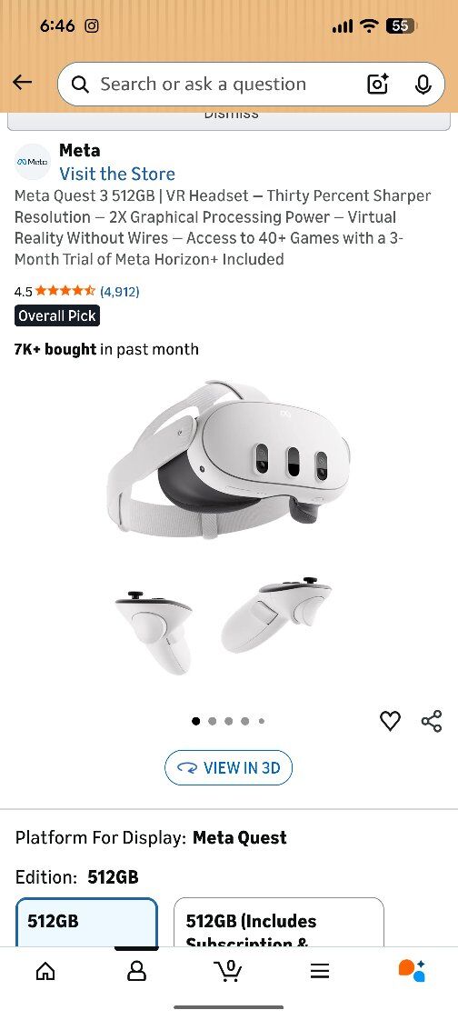 Meta Quest 3 – 512GB Lightly used (only 3 times). In excellent condition. Includes: Original box Charging dock Carrying case Skins