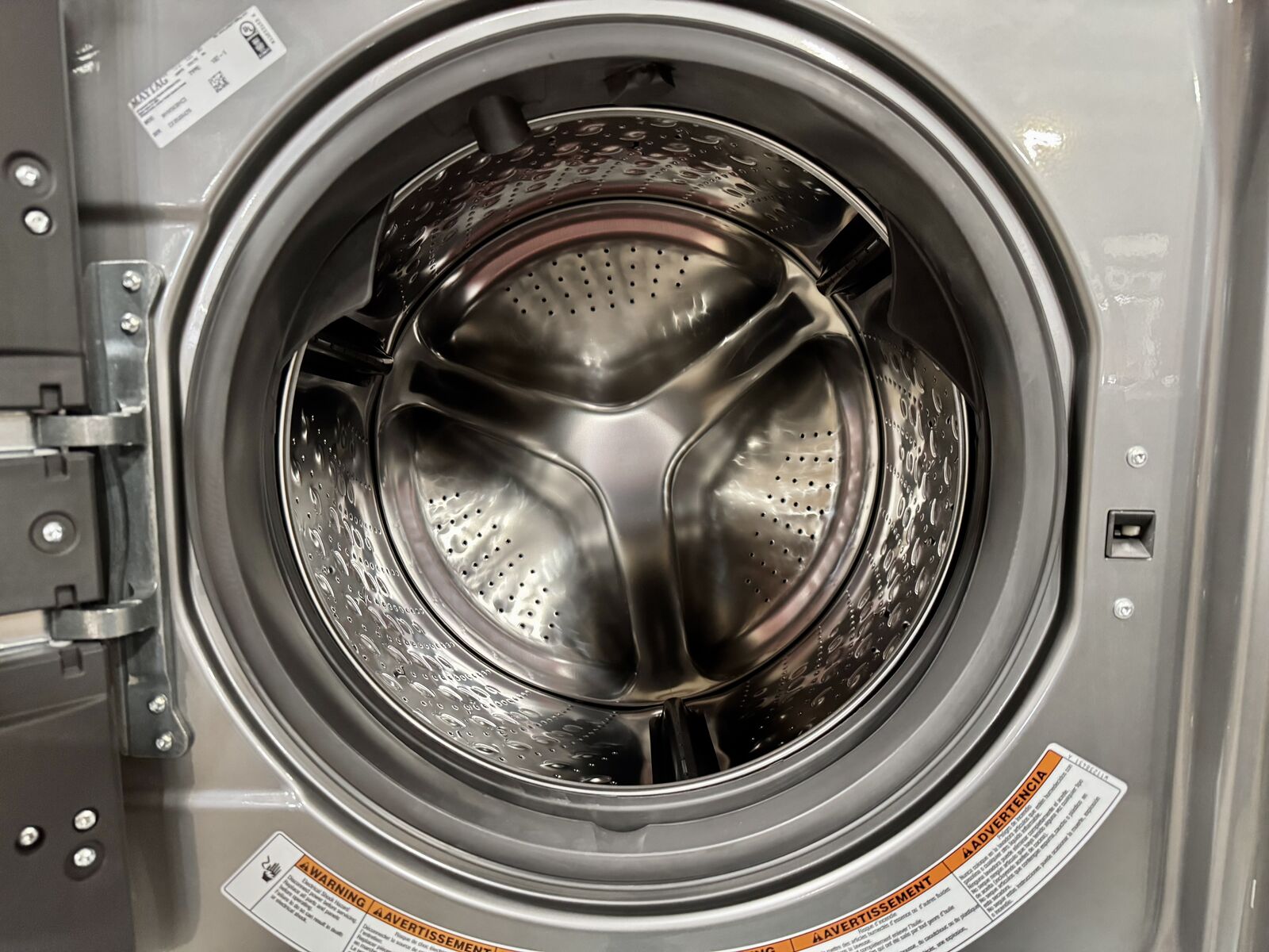 Like new. Maytag set is sold with a parts and labor warranty.