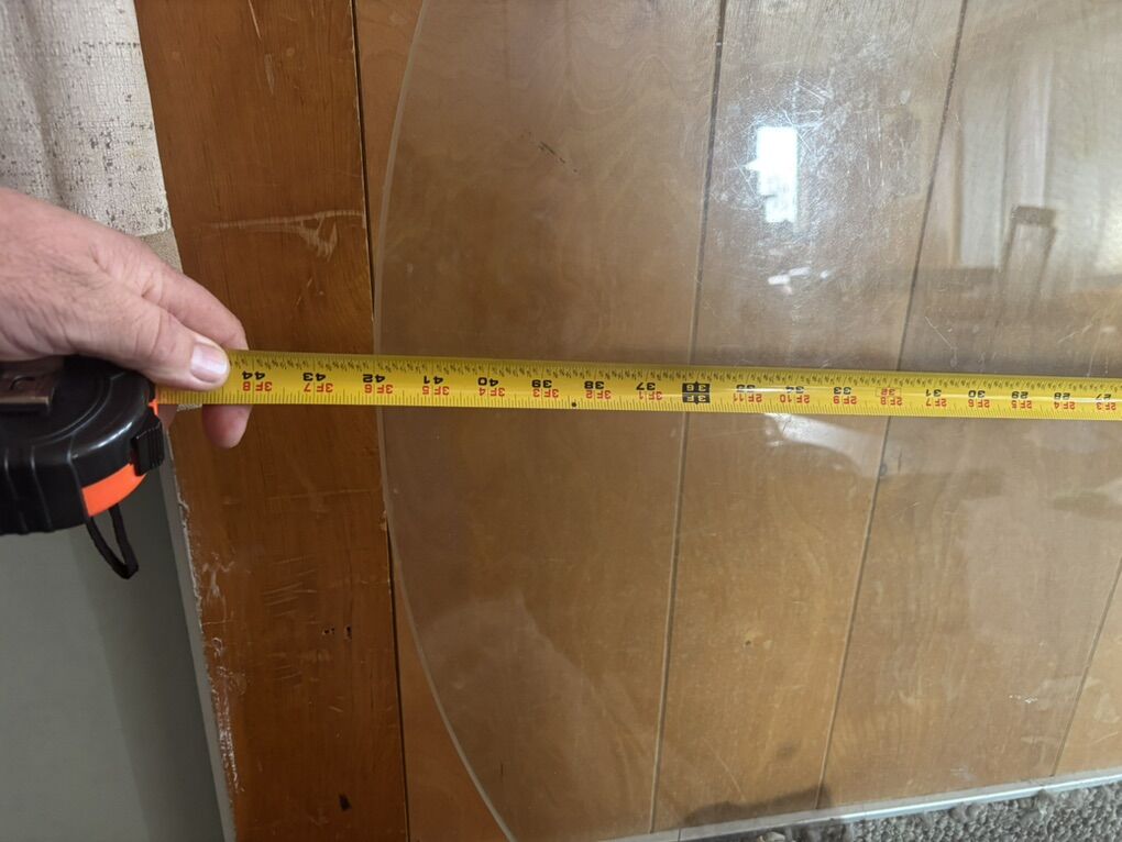The coffee table we had the glass on broke so now we just have the glass. 3/8 in. X 42 in.