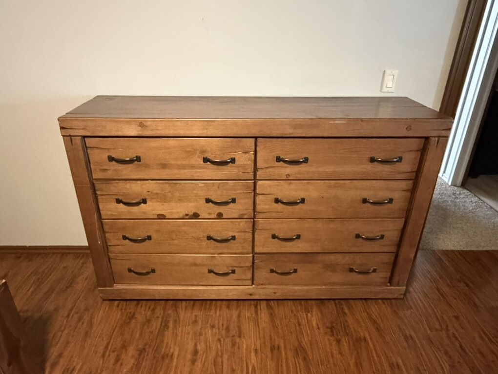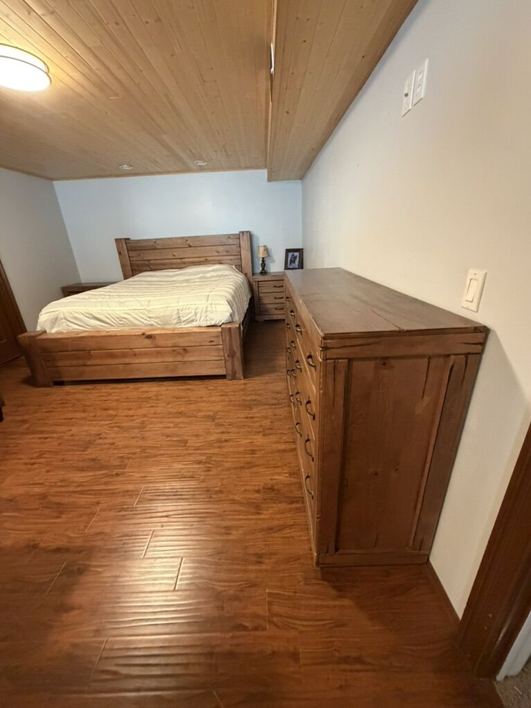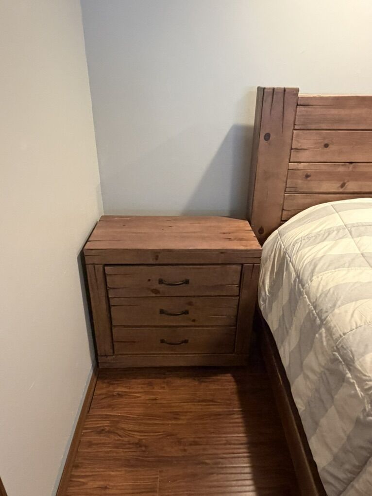 ApplePayKings size bedroom set. 2 end tables-1 Dresser- king bed frame-mattress and box spring. Must take all.