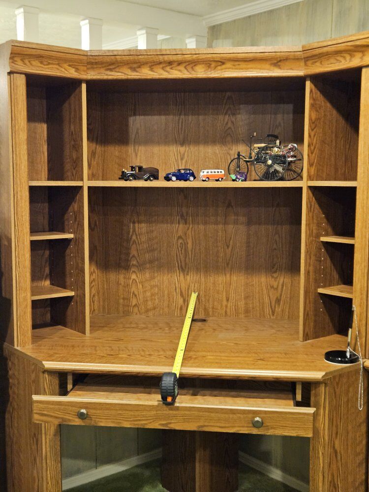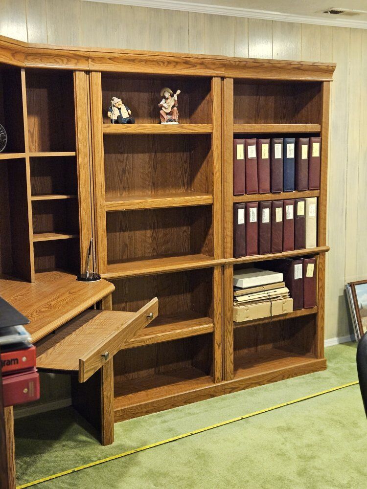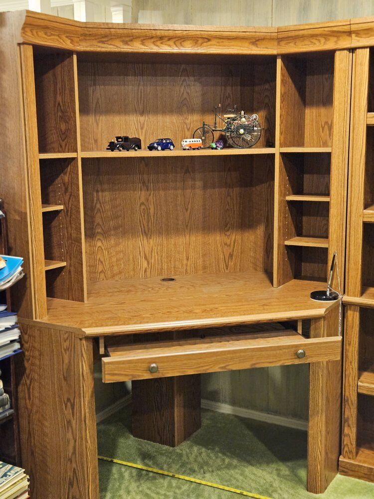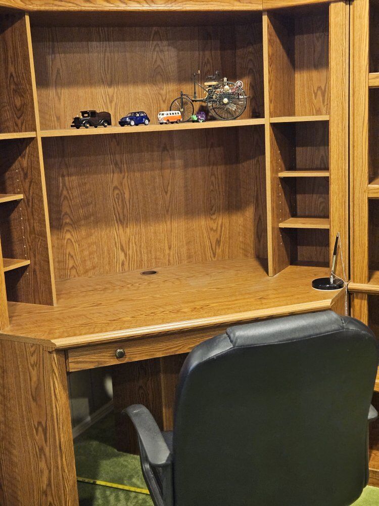 Very nice corner desk with hutch, chair, and 2 bookcases. It comes apart in 3 sections. Nice addition for your office. Cash only, no deliveries. Thanks!
