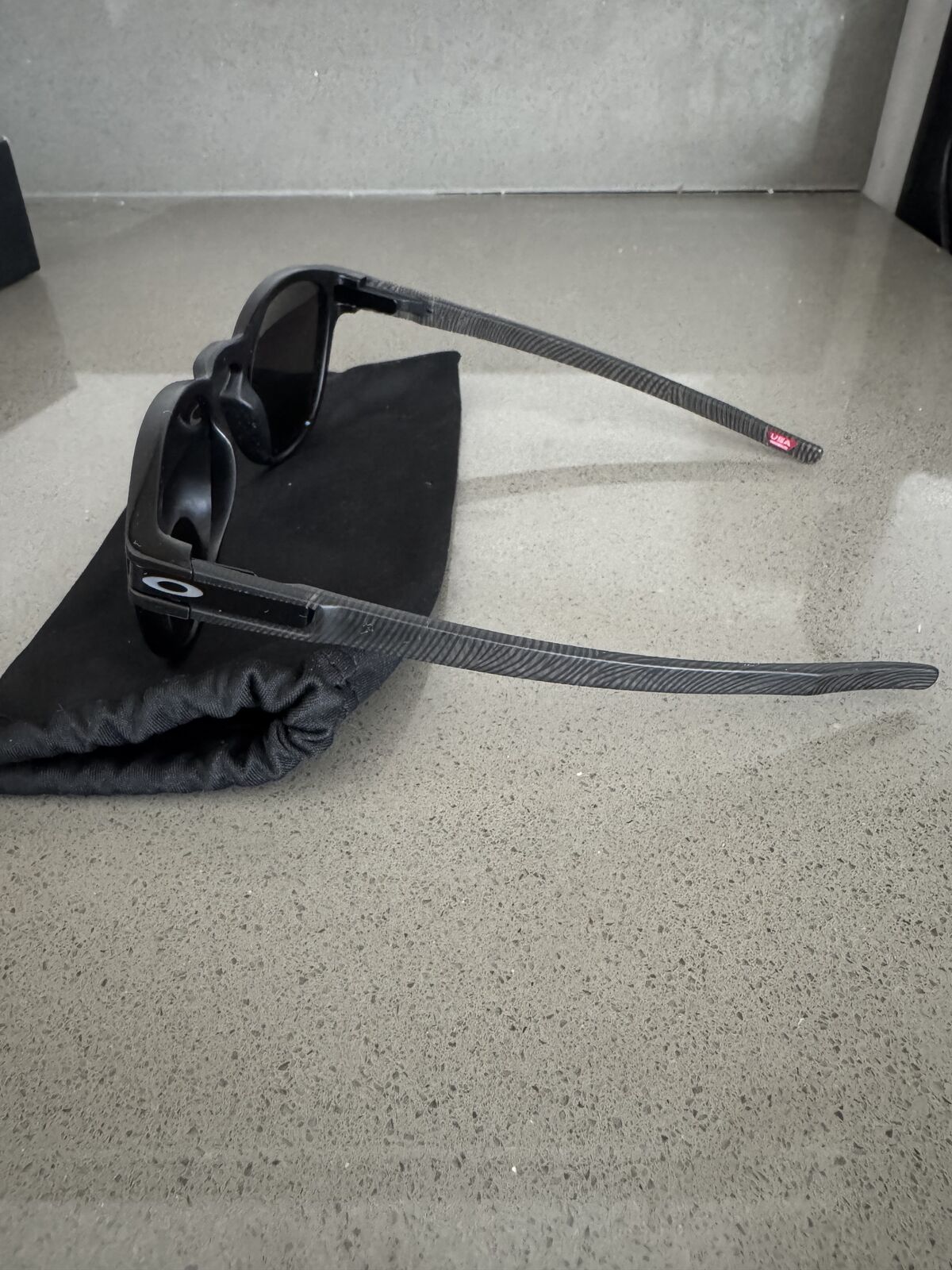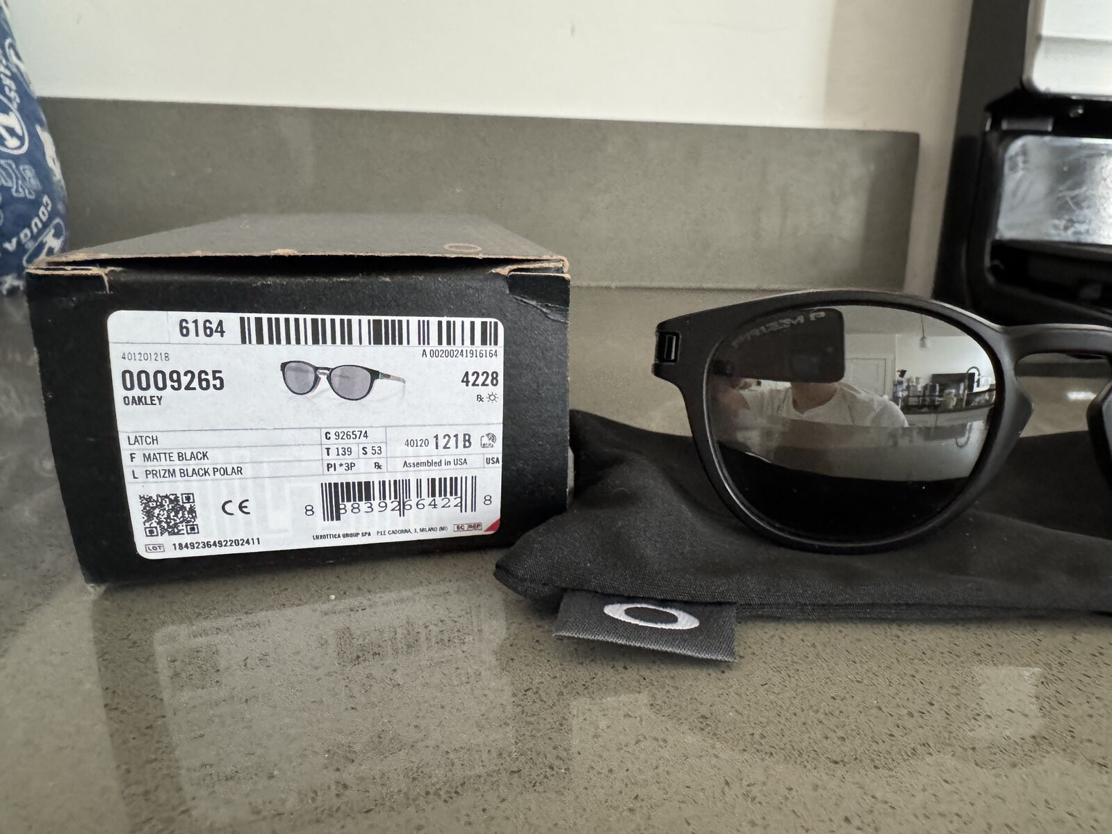 These are 100% authenticity Oakley Latch sunglasses, matte back frame (with striping, see picture), and black Prizm Polarized lenses.