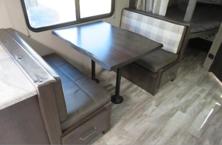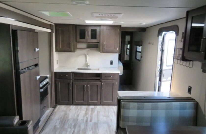 Only one owner, kept clean and maintained. Sleeps 6 comfortably but up to 9 total, 1 slide out, bunk beds, fold down tri fold sofa, queen bed in private front bedroom. The kitchen is equipped with a three-burner gas stove with oven, a microwave, 12v refrigerator\freezer. USB charging parts throughout. Plenty of seating. The full bathroom provides convenience with its walk-in shower, linen closet, and vanity. also has an outdoor kitchen which is a great bonus feature that allows you to cook while you are outside. Has integrated 165watt solar panel and controller to help keep batteries going. We've added 2 lithium ion 12v RV batteries($1400 value, included in price), and a Victron bluetooth battery monitor so you can check voltage going in or out and anytime. Easy to tow 6000lbs dry, can include 14000lb rated Equalizer Hitch(2" receiver) if needed for extra $600. Text with any questions.