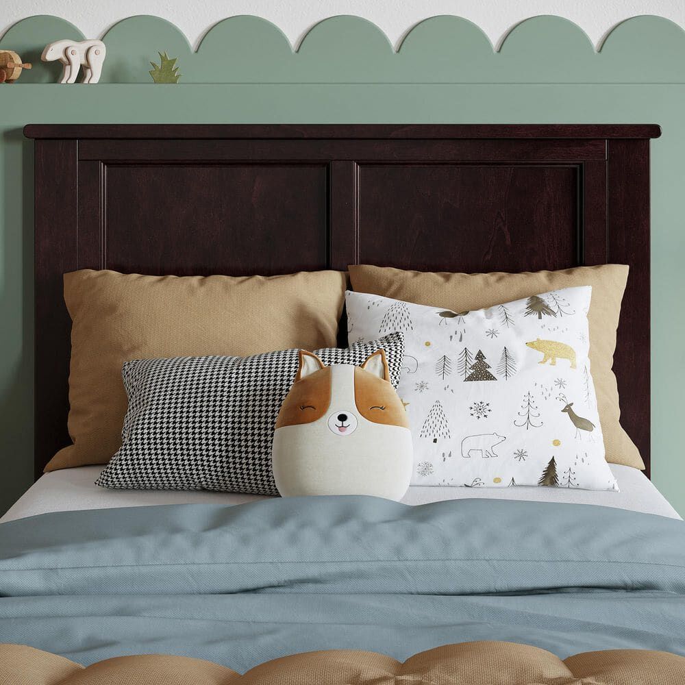 ZelleYou can add a touch of elegance to your bedroom with this beautiful espresso-colored, solid hardwood headboard. It's designed to fit most standard metal frames and comes with a simple assembly process. The classic wood paneling and refined finish will add sophistication to any room.