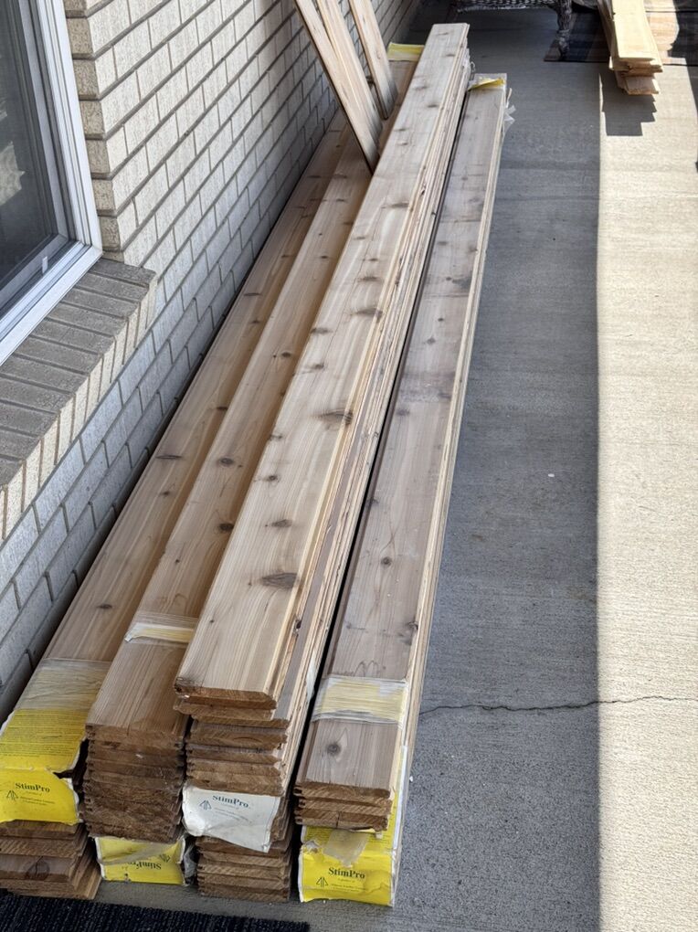 1/2” x 12’ Tongue & Groove Planking I have 11 paks of 6 planks per bundle Cedar, could be knotty pine, not sure. New never used had for a basement project but went a different way asking 75.00 per bundle.