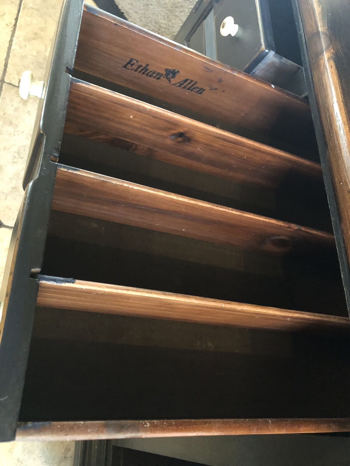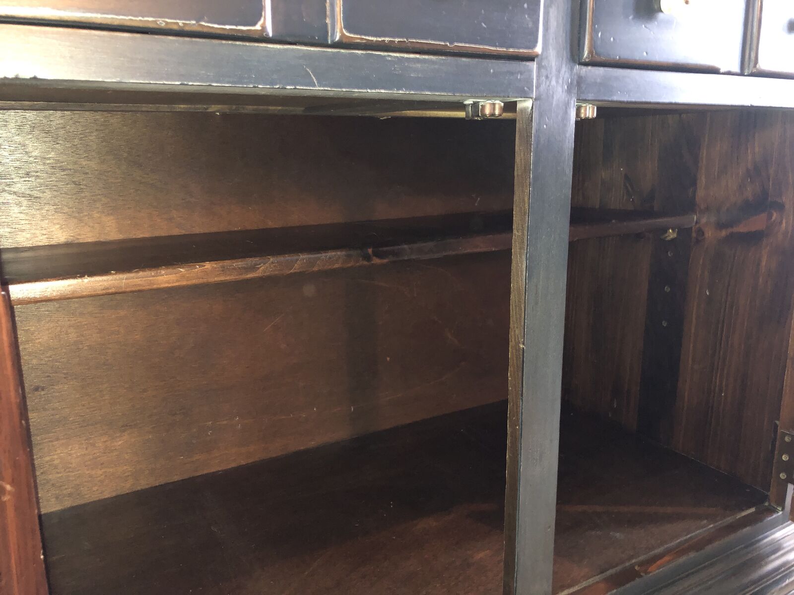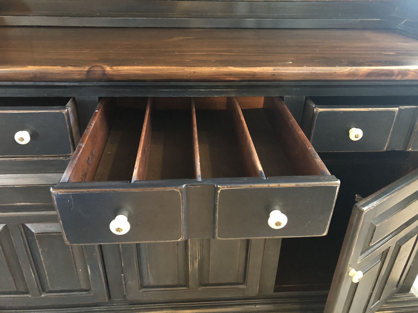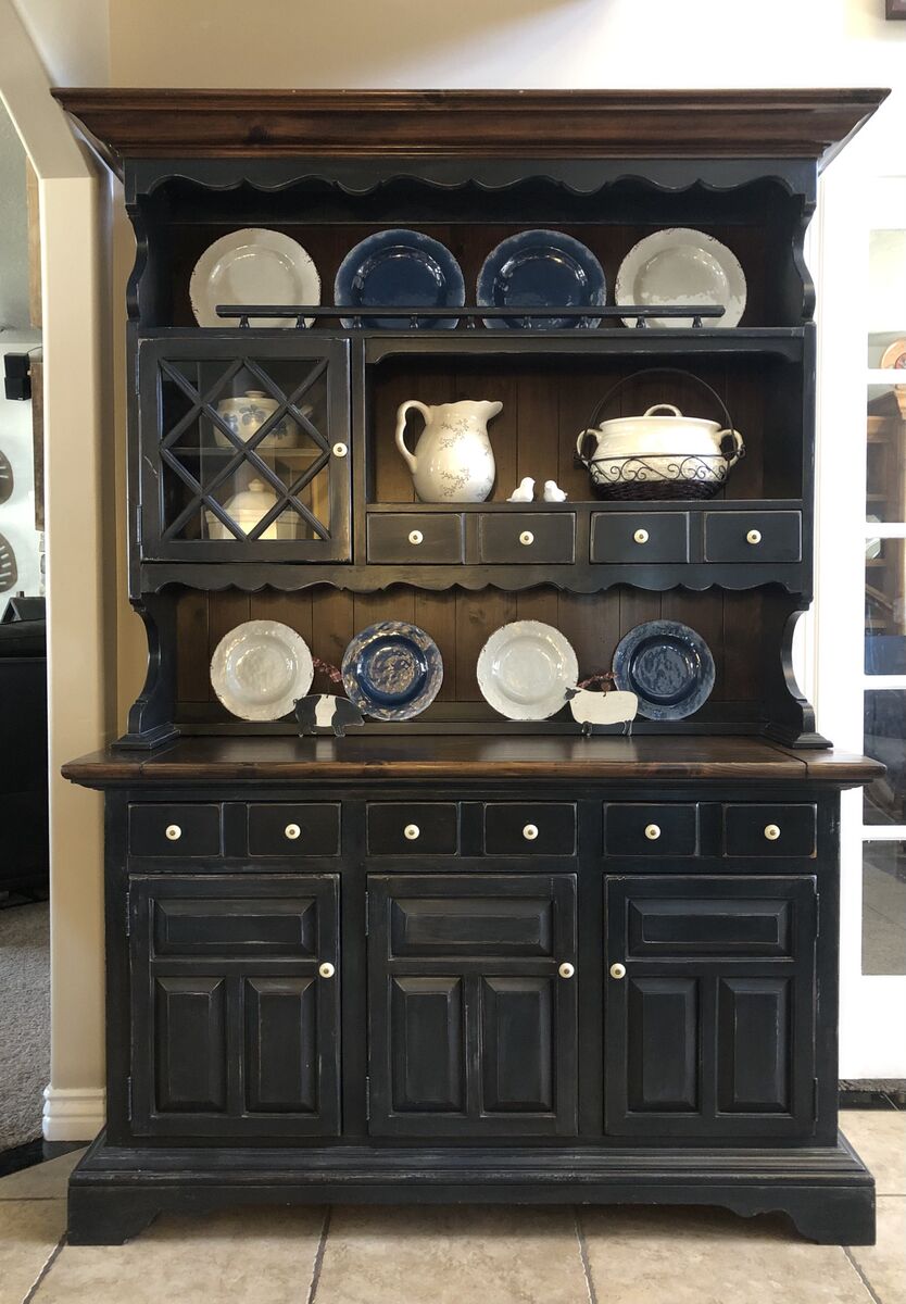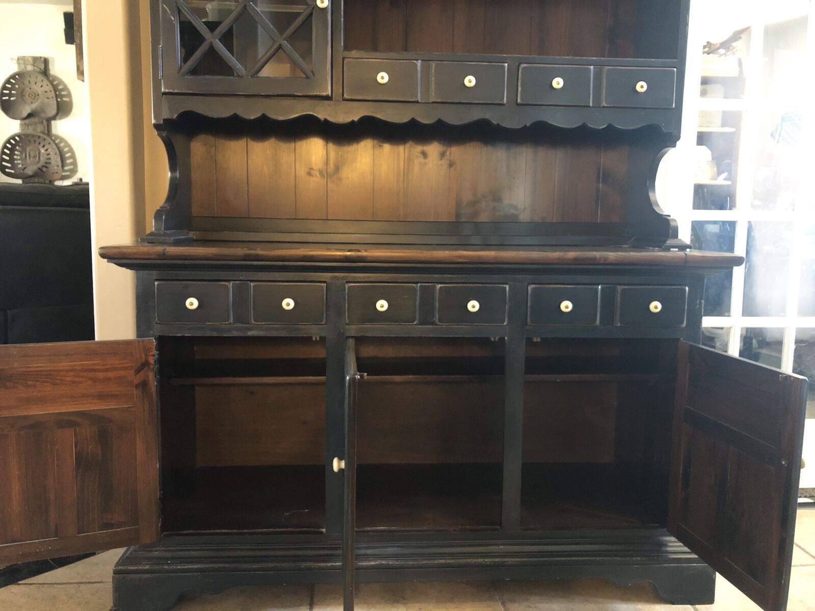 VenmoBeautiful, dark midnight blue hutch. Can look black from a distance or in certain lighting and is slightly distressed. Lots of drawers and cabinet space for storage. Listing is for hutch only and does not include the decor. Approx measurement: 56" W x 20" D x 80" T. $500 obo. Thanks for looking.