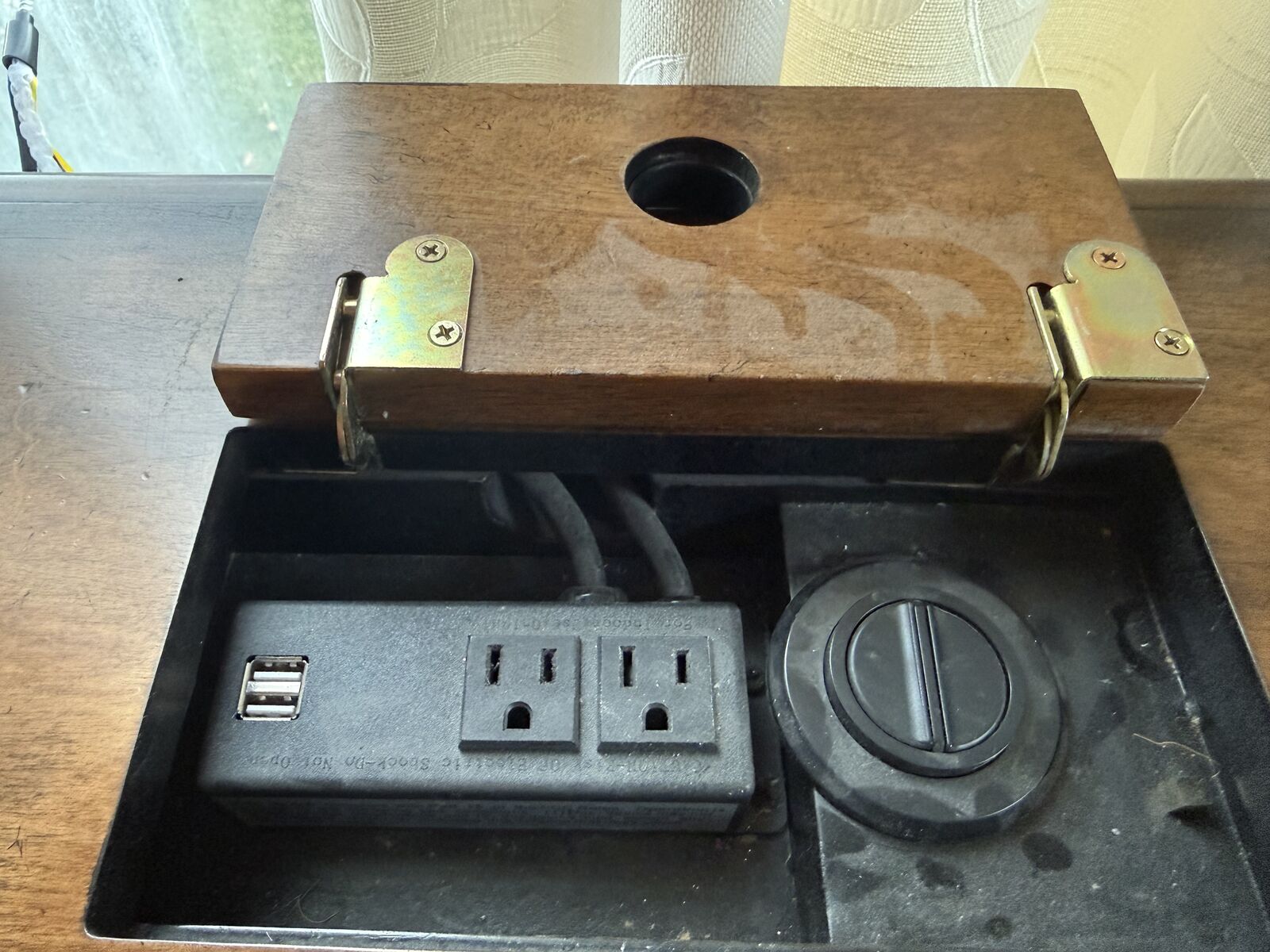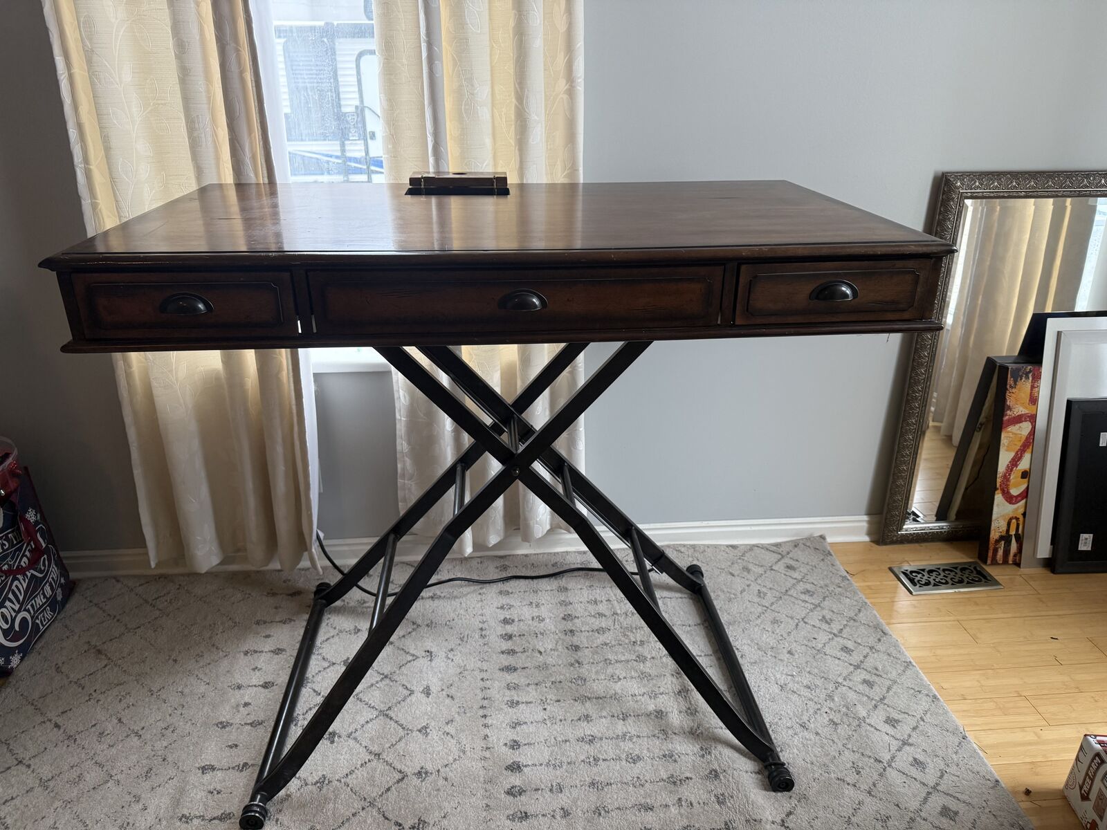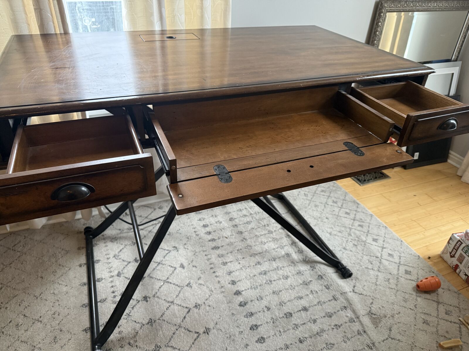 VenmoRaising Desk / Craft table USB port, two outlests, up/down button Dimensions : 54 wide 30 deep min height (at the lowest) 29 tall Max height (at the highest) 45 tall