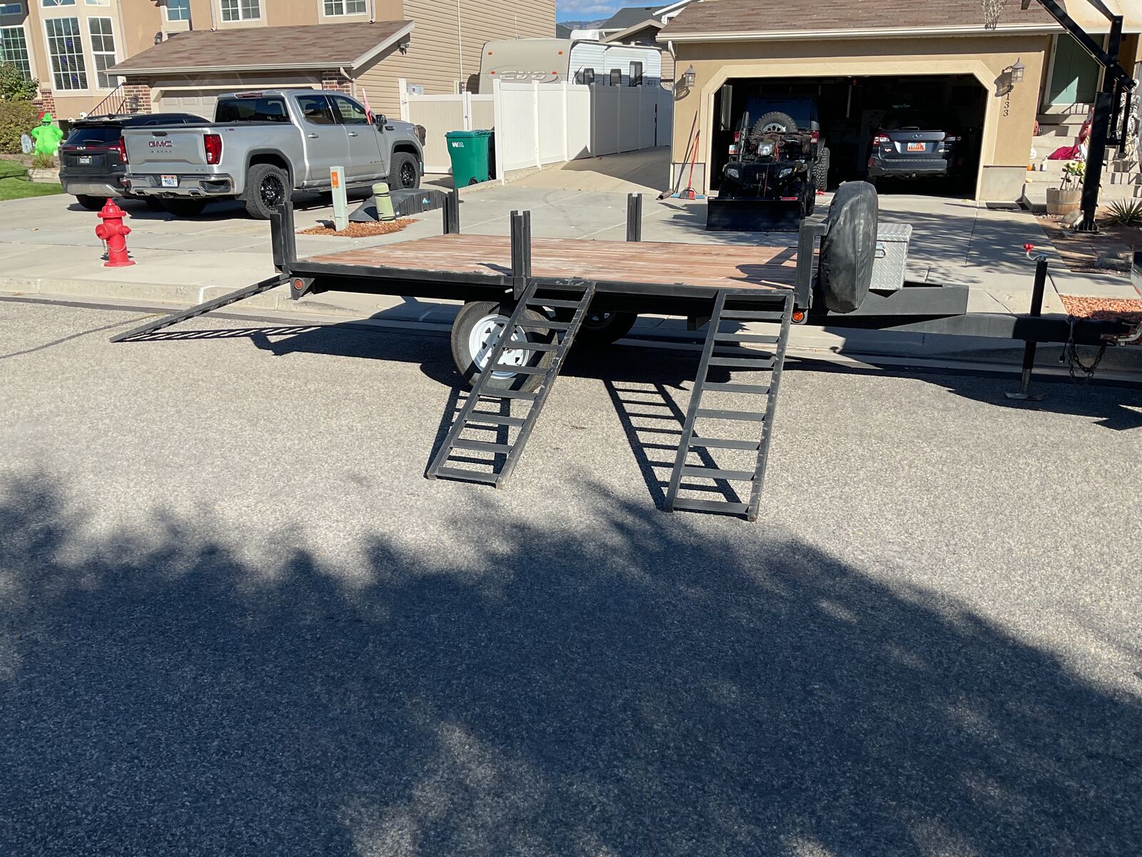 Venmo2006 big bubba trailer(7'5" x 10'2"), it is setup up for drive on drive off, meaning you can load on both side or from the rear. The rear wall doubles as a dirt bike ramp as well. Both side and center poster are completely removable for easy load large item such as lumber or dry wall too. the trailer is very heavy duty built and has led light all the way around. Will fits two 4 wheeler and dirt bike depending on the 4 wheelers you have. it has a 2" ball. Asking $1500 obo.