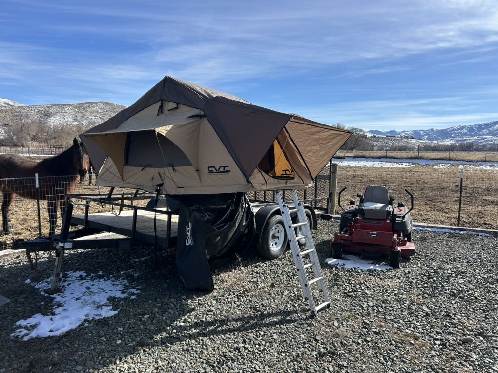 Been a good trailer, but we just upgraded to something a little bigger. 14 ft deck. It’s got 4 new tires, new rails, and new fenders. The tent is basically new. I bought it 4 years ago and we have only used it 3 times. I upgrade the mattress inside from the 2 inch standard foam pad to a 4 inch to help with comfort and keep the cold from coming underneath. It’s got lights inside that will fold down with the tent, I’ve been running them off a Milwaukee m18 battery. $3000 obo