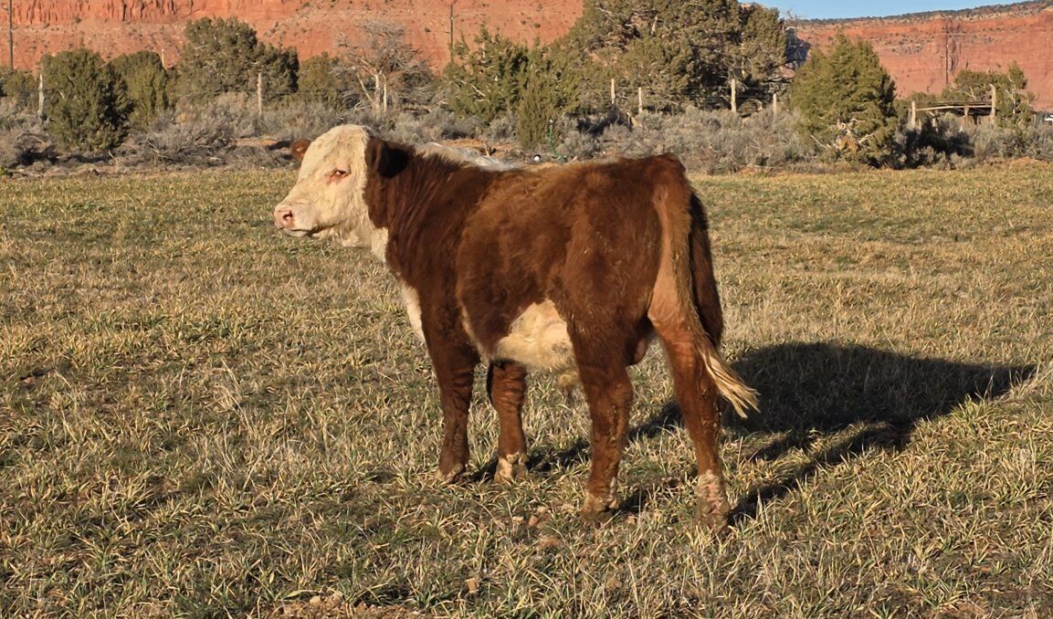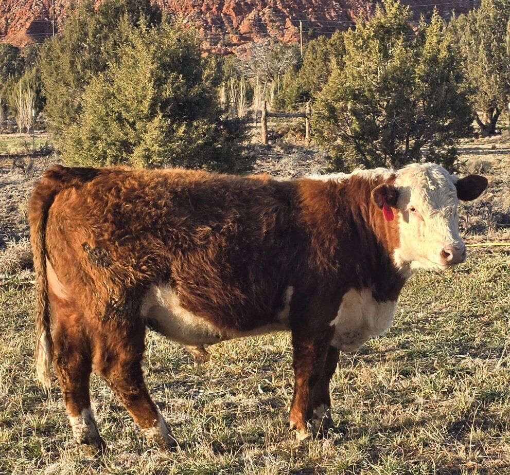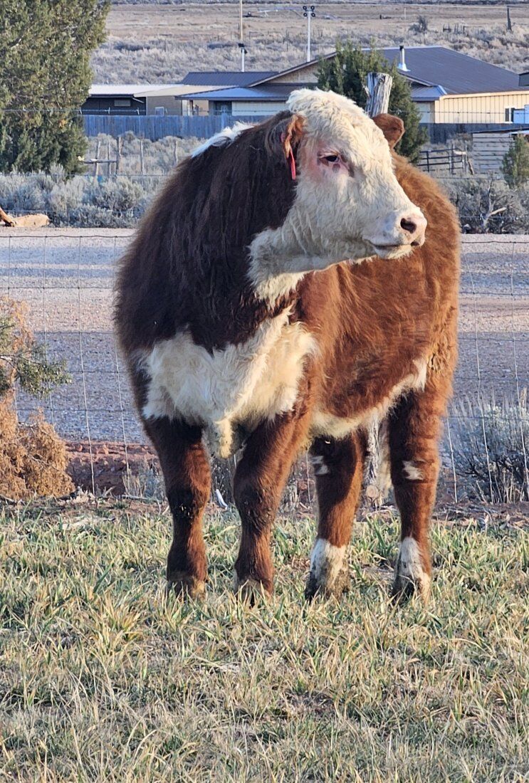Birthdate: February 6, 2025 First calf from its Sire and Dam. Its Sire is a Line One Registered Bull. Its Dam is a Registered Cow. Performance data available. Is Trich tested. Got a Breeding Soundness Exam performed by a Licensed Utah Veterinarian. Got De-wormed with Pour-On Ivermectin last fall. Excellent confirmation. Has excellent calving ease in its bloodline. Please call for more detailed information.