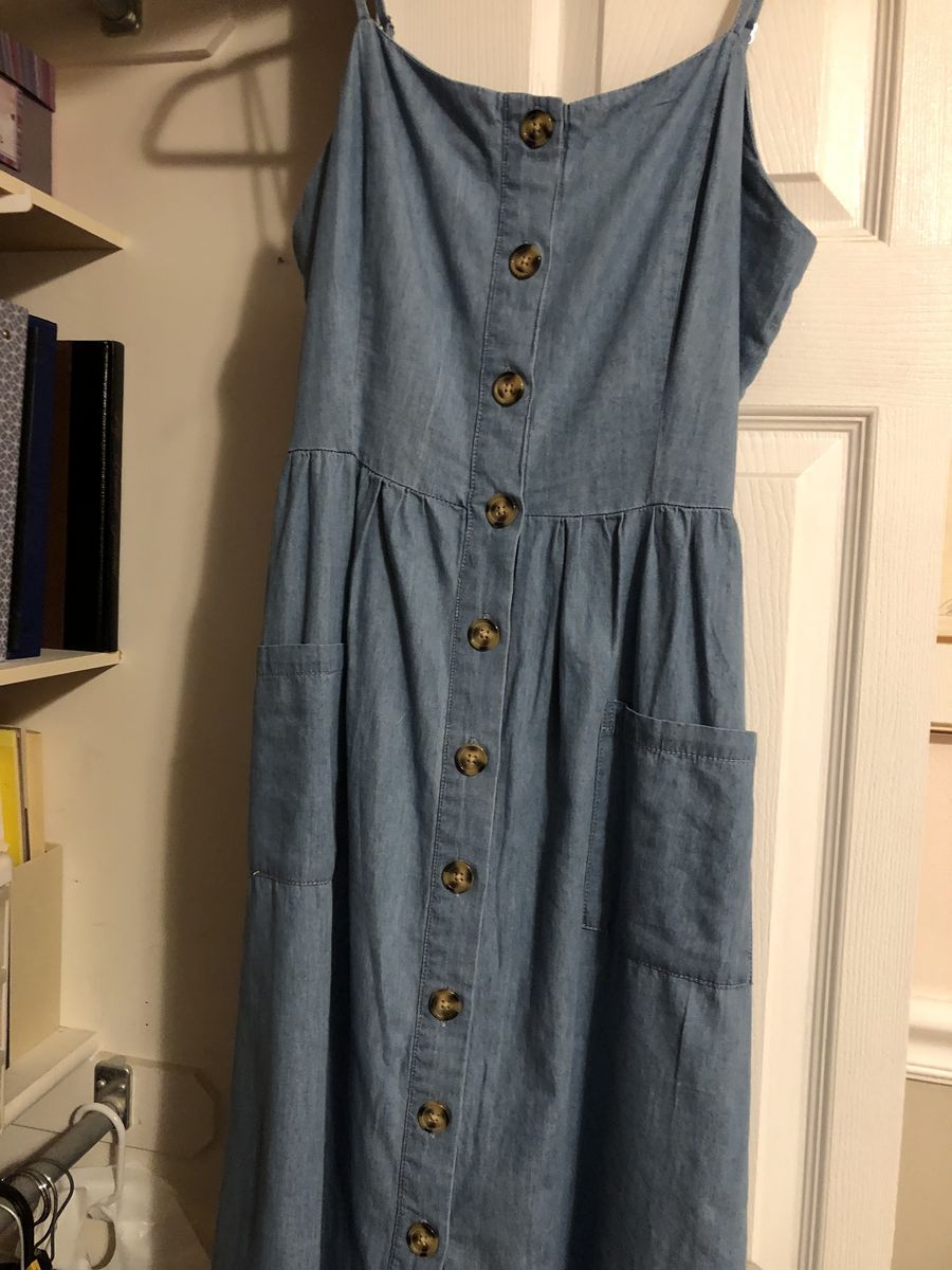 White button up XXL blouse with black hourse/ horse shoe design. I bought on line and they sent the wrong size and I don't want the hassle of exchanging or returning it. Blue jumper $8, Stretch head bands $2 each, pair of sandals size 9 $12