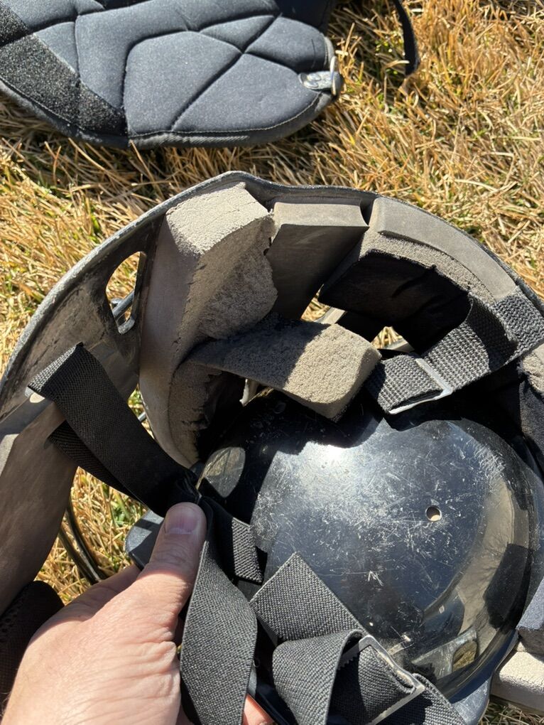 VenmoGreat set that is not abused but is well worn. The equipment fit my child from 4th grade to 7th. The helmet has foam that is separating.