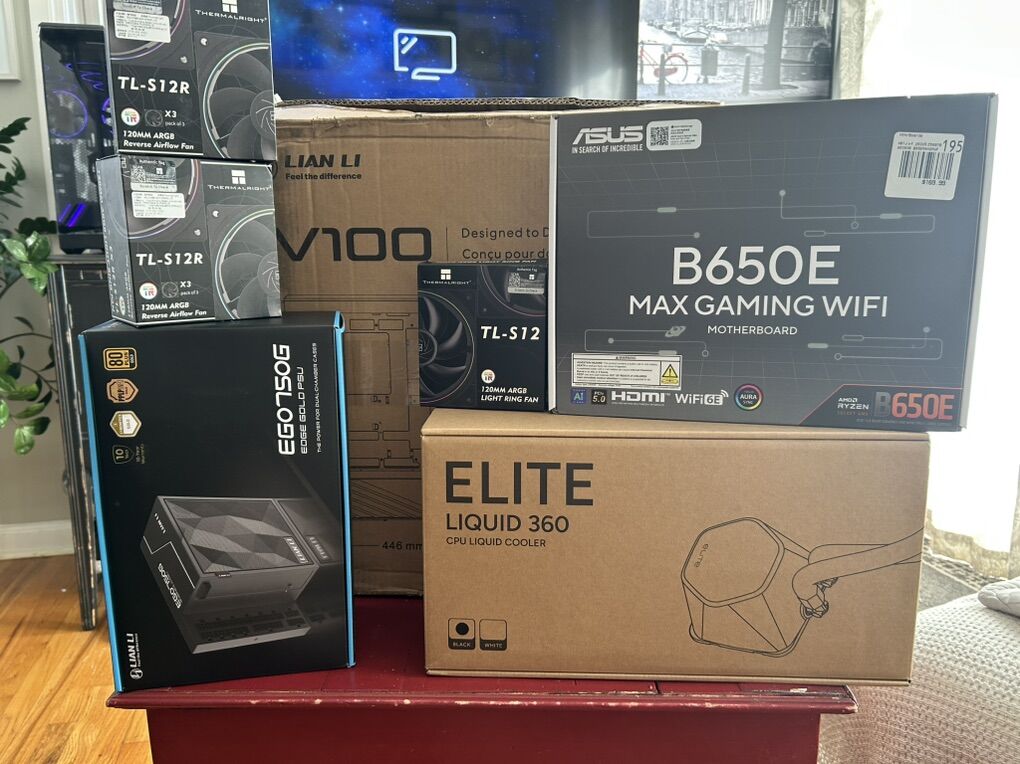 Full part list - CPU - AMD Ryzen 7600x AIO - Cooler Master Elite 360mm w/Thermalright fans to match the case fans Motherboard - ASUS B650E Max Gaming WiFi RAM - 32gb (2x16) Kingston Fury Beast 6000/CL36 GPU - Asus DUAL OC GeForce RTX 5070 12 GB (or no GPU) Storage - 2tb WD SN5000 Blue TLC NVME Lian Li Vector V100 ATX Mid Tower PSU - Lian Li 750w Edge Gold Fans - Thermalright TL-S12 (4 total - 3 on the AIO and 1 rear exhaust) and Thermalright TL-S12R (reverse fans for intake, 5 total on the right side and bottom plus 1 spare I will include.) OS - Windows 11 Home, licensed/activated